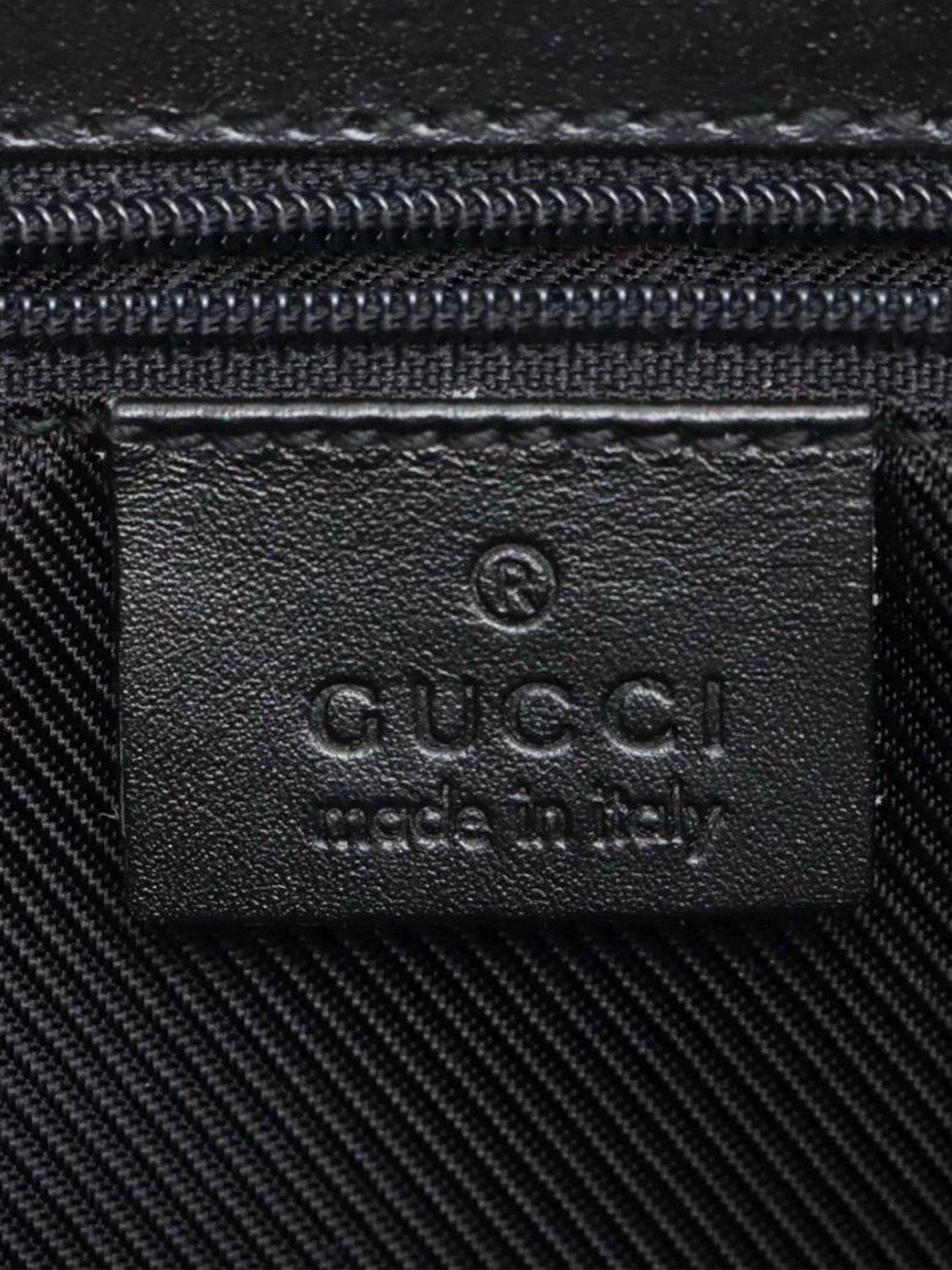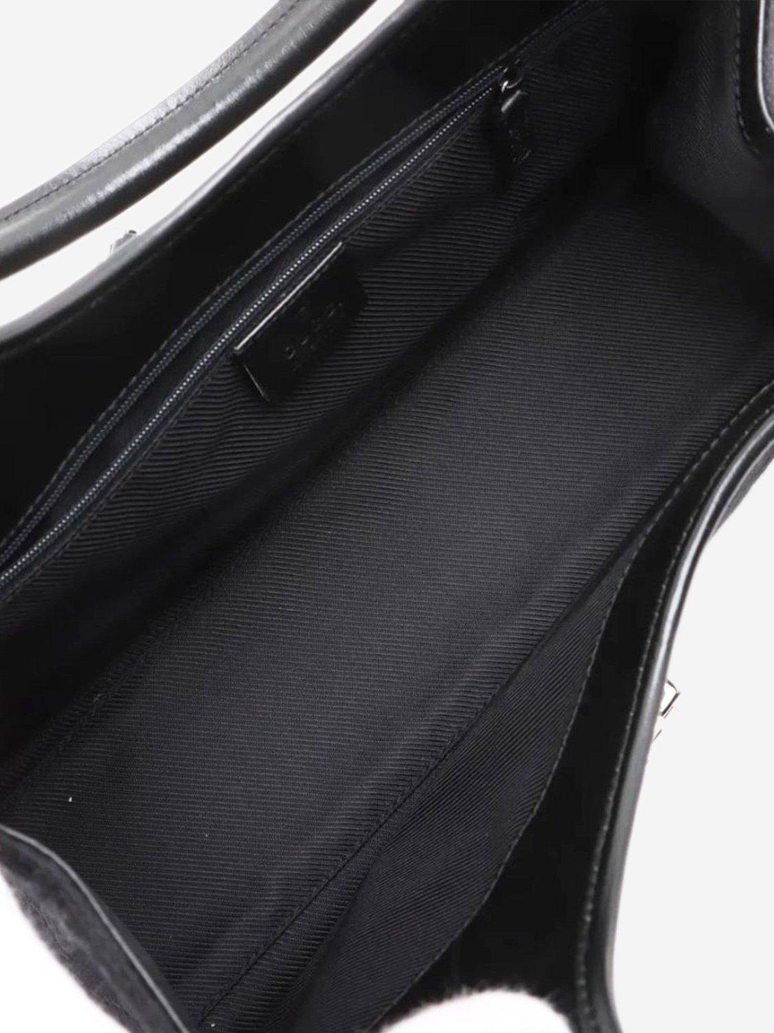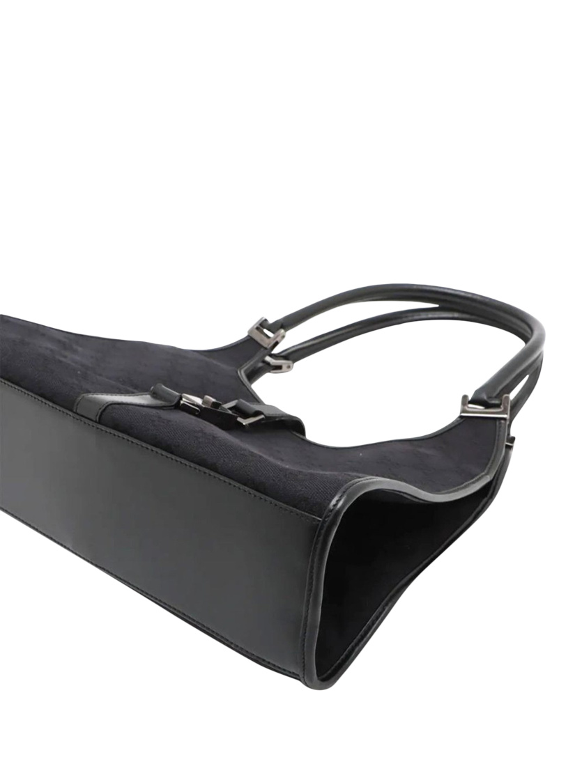 Pre-loved GUCCI black Jackie canvas shoulder bag with silver hardware. Main compartment with an interior zipped pocket. Clasp closure.