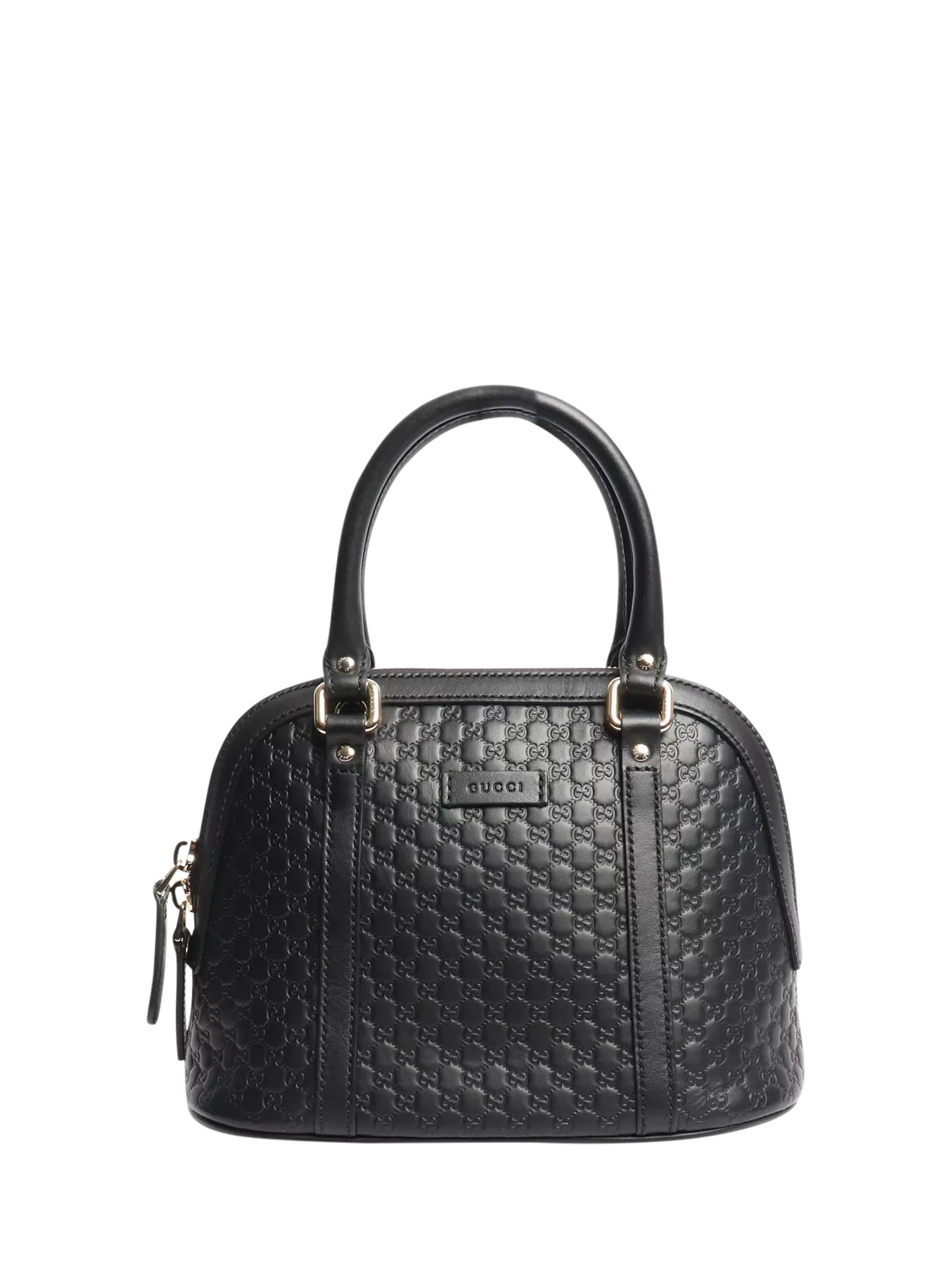 Pre-loved GUCCI black Micro Guccissima 2-way bag with gold hardware. This leather bag has two handles and comes with a removable and adjustable strap. The bag has a main zipped compartment with an interior patch pocket.