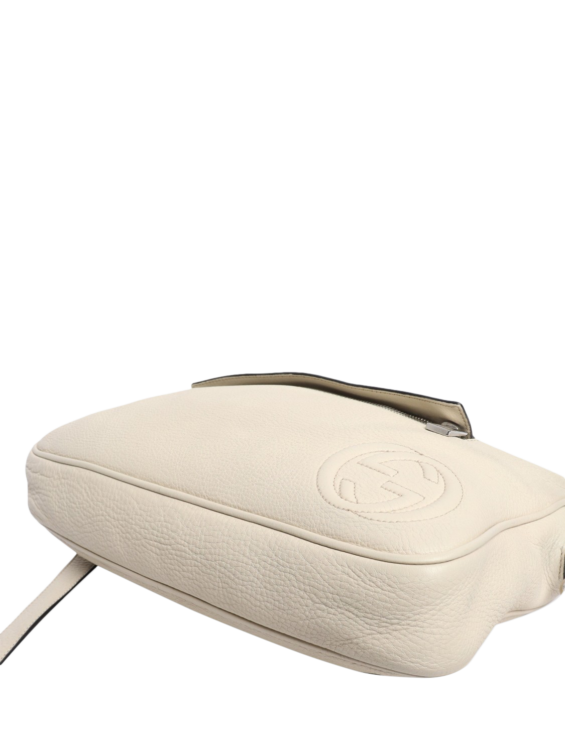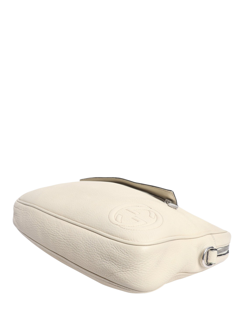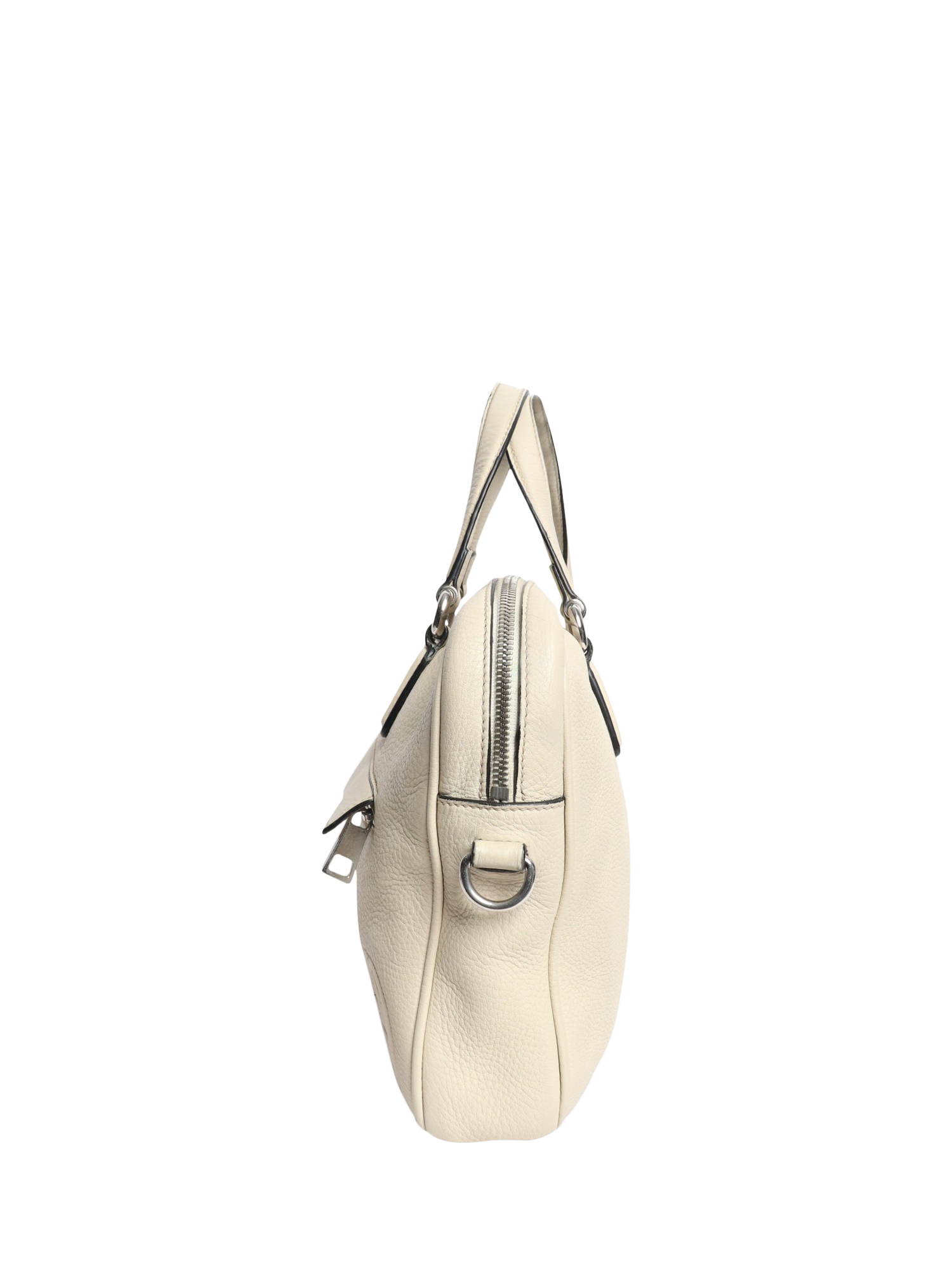 Pre-loved GUCCI neutral Soho briefcase with silver hardware. This bag has a main compartment, two slip pockets, and one zipped pocket. Comes with a detachable shoulder strap.