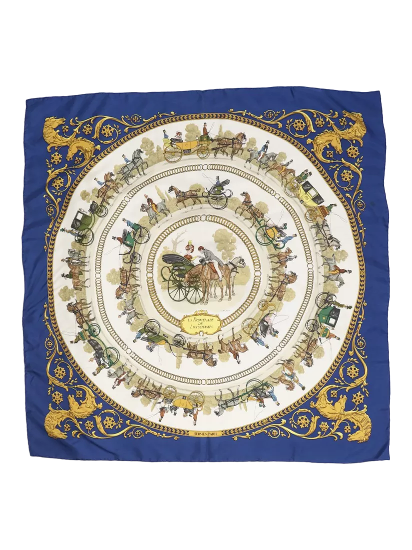 Pre-loved Hermès blue silk scarf.