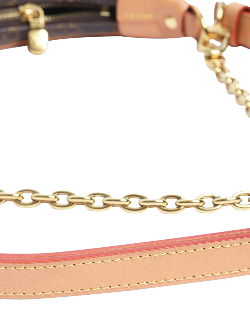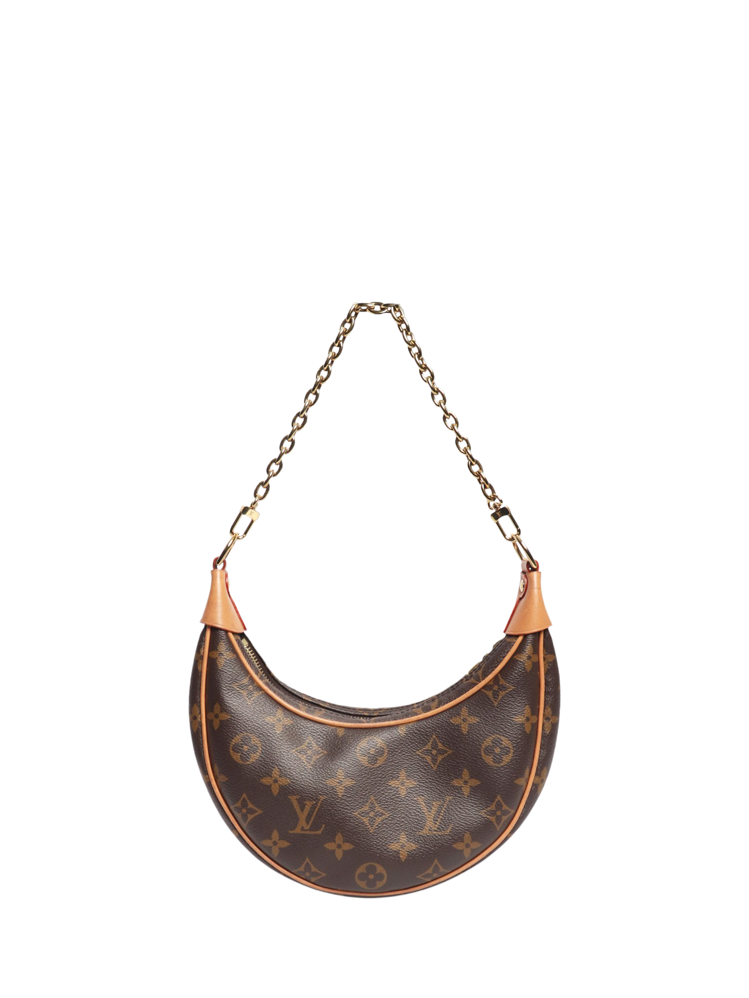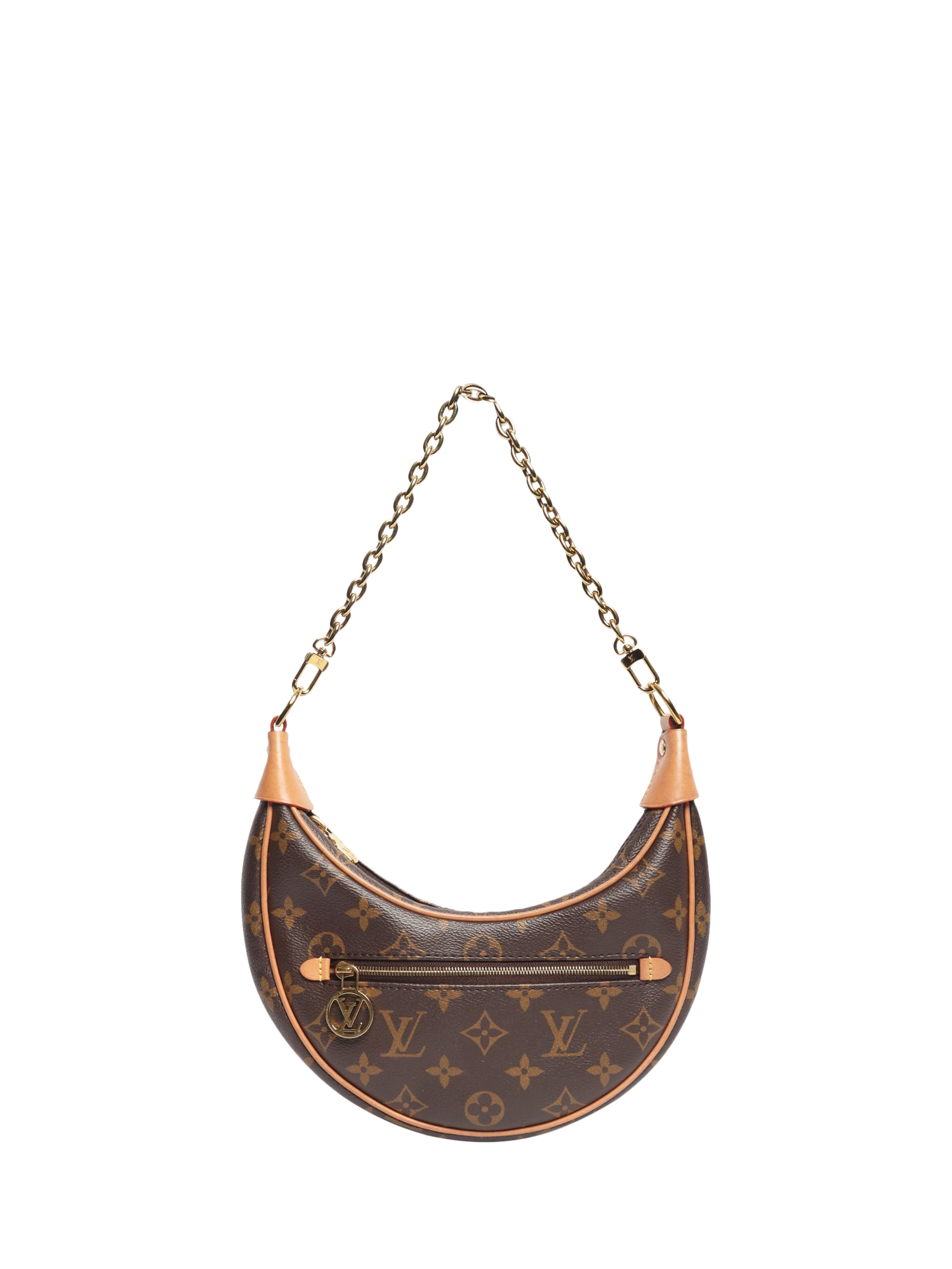 Pre-loved Louis Vuitton brown Loop PM shoulder bag with gold hardware. This bag comes with a removable chain strap and leather shoulder strap. Main zipped compartment and an outer zipped pocket on the front.