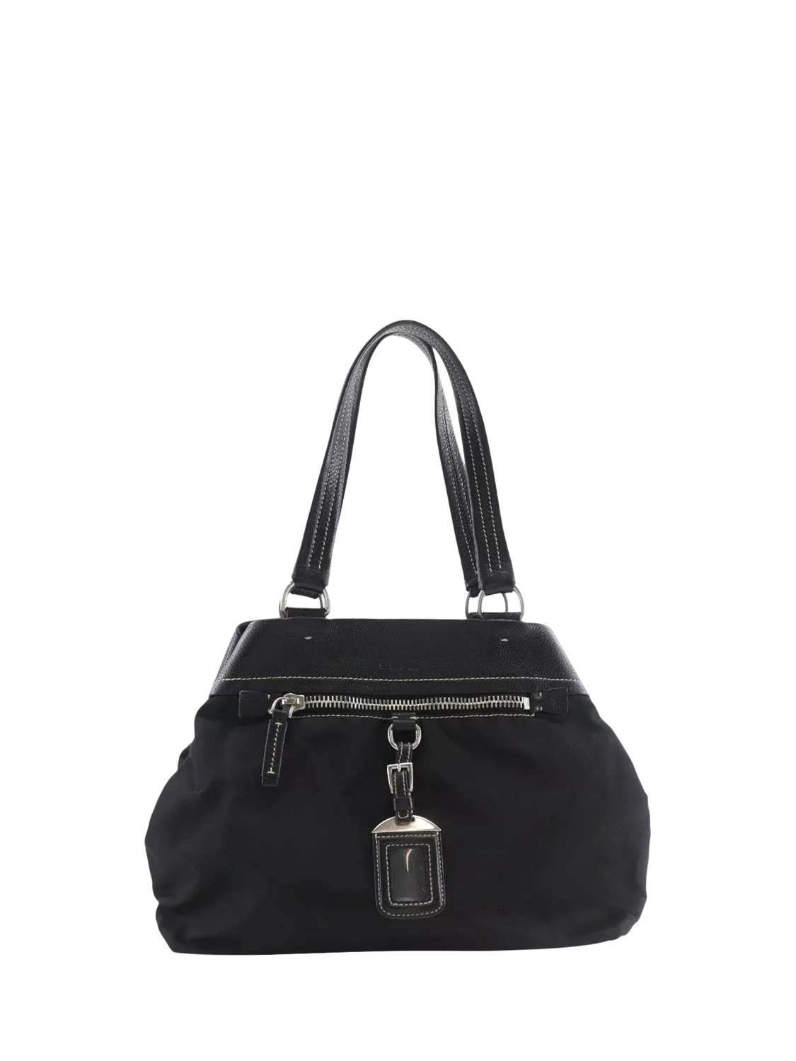 Pre-ownedPre-loved Prada Nylon and Leather Top Handle Bag, Black