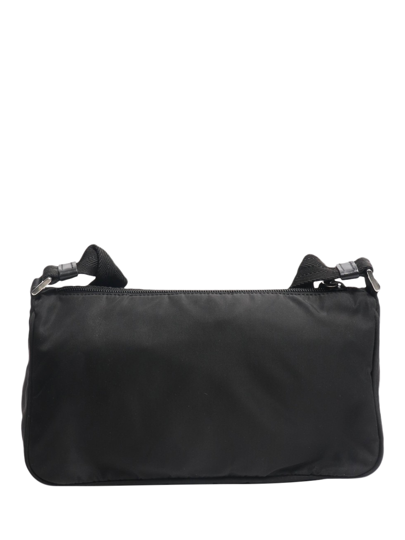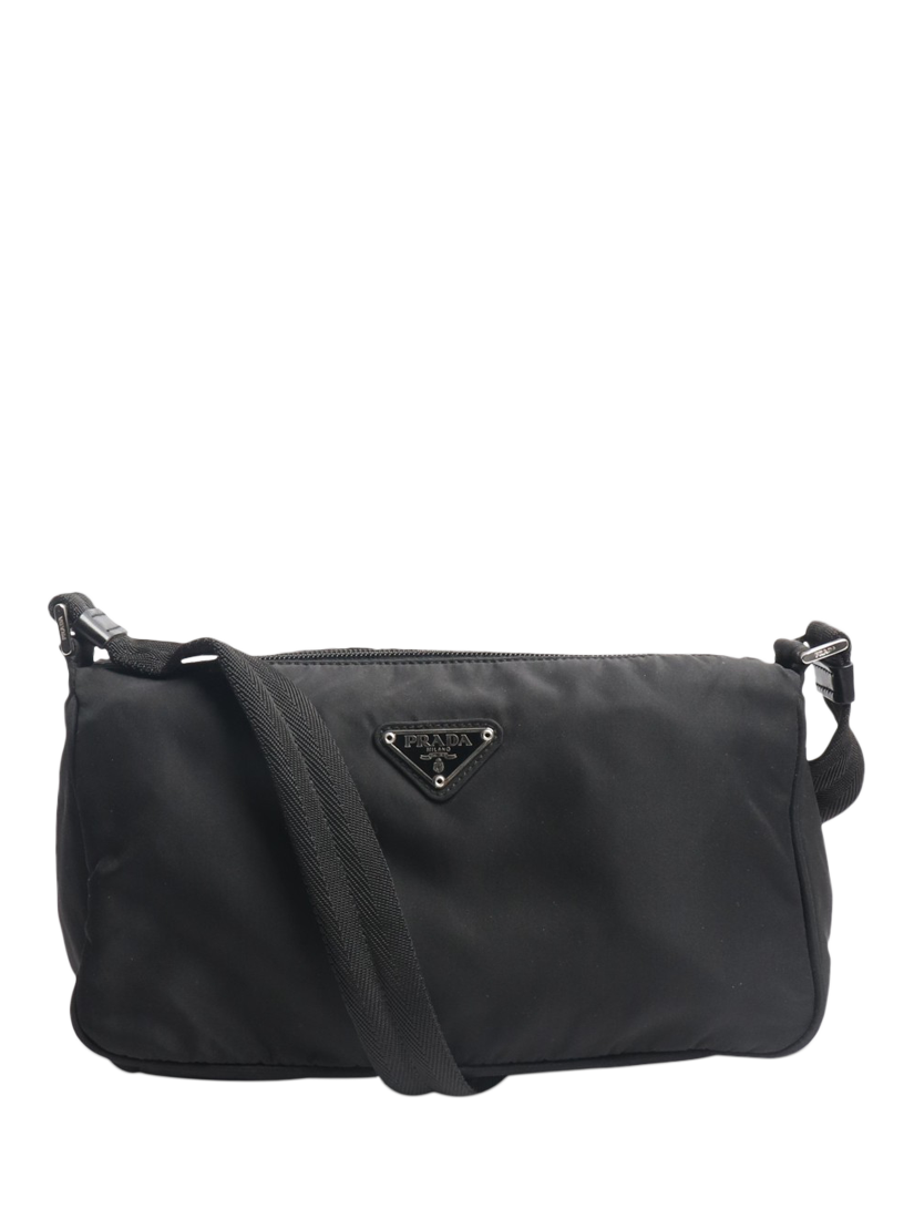 Pre-ownedPre-loved Prada Nylon Silver Hardware Shoulder Bag, Black