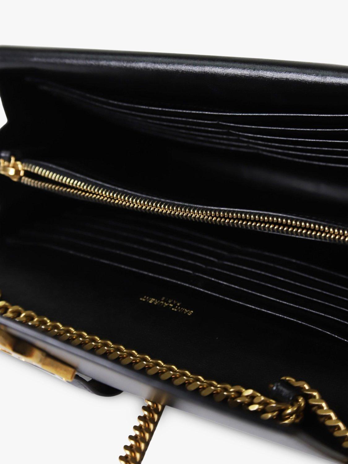 Pre-ownedPre-loved SAINT LAURENT Cassandre Envelope Double Flap Chain Wallet, Black