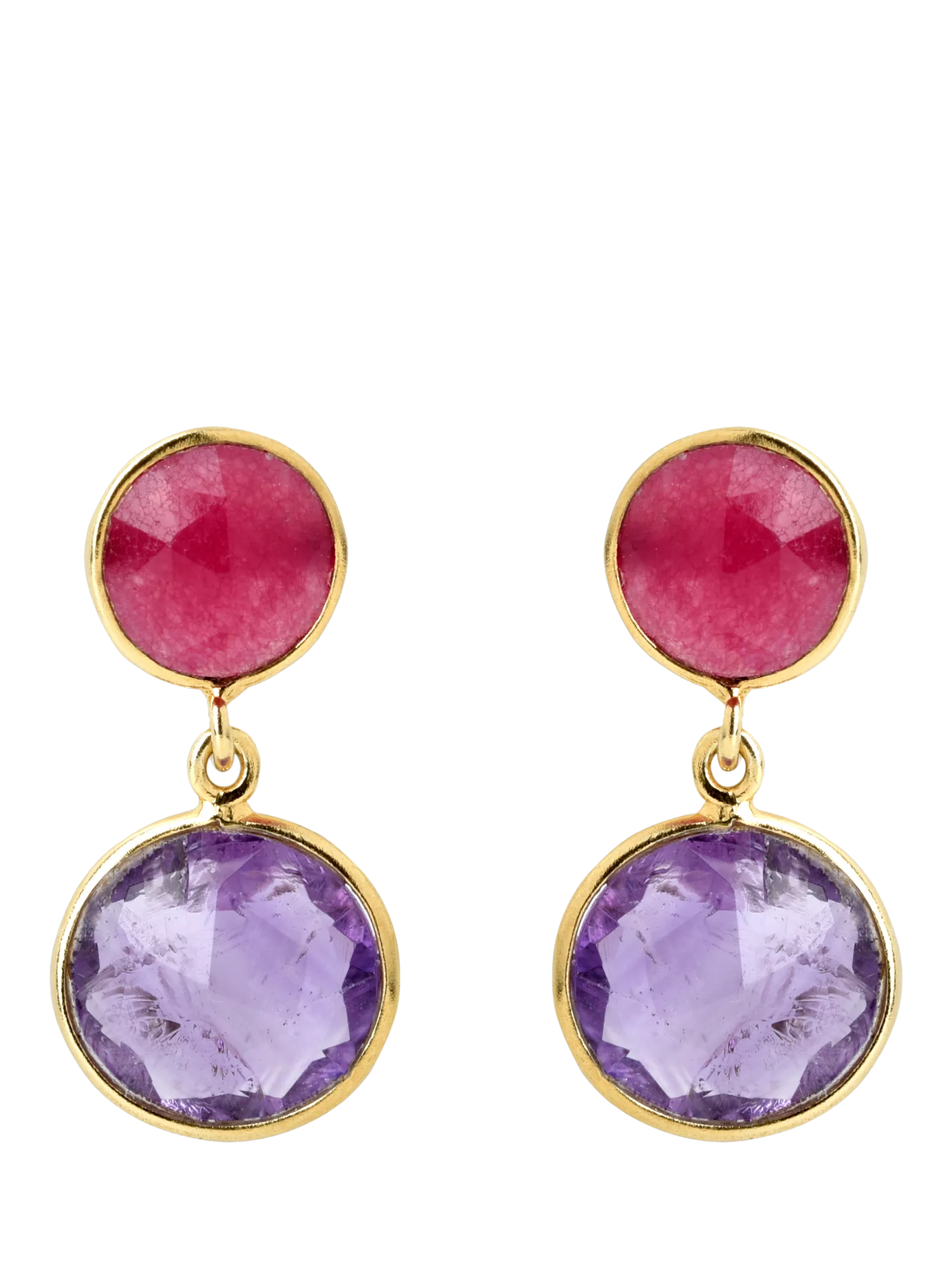 EclecticaPre-loved Silver Vermeil Oval Amethyst Drop Agate Earrings