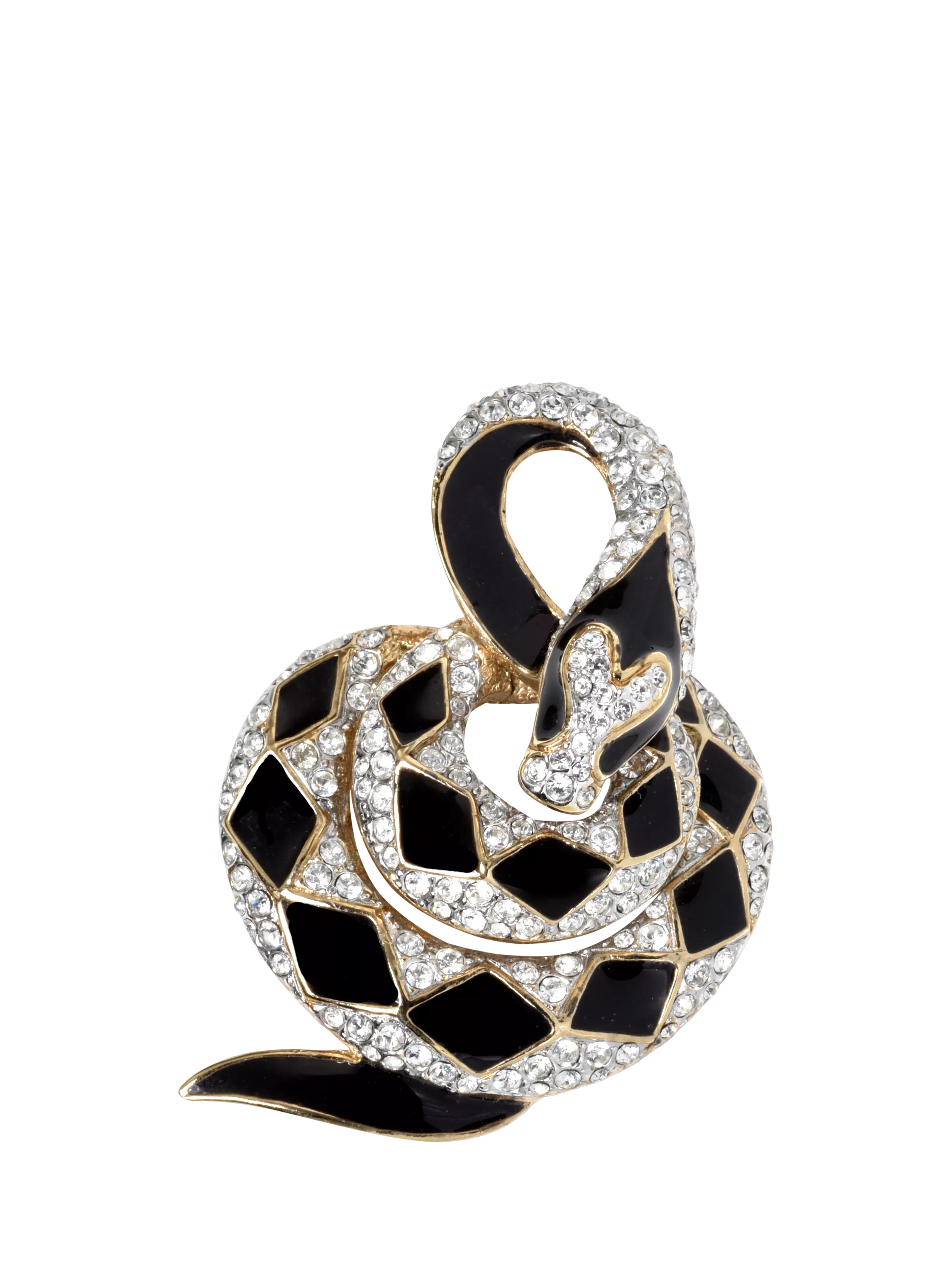 EclecticaPre-loved Swarovski Crystal Coiled Snake Brooch, Black/Gold