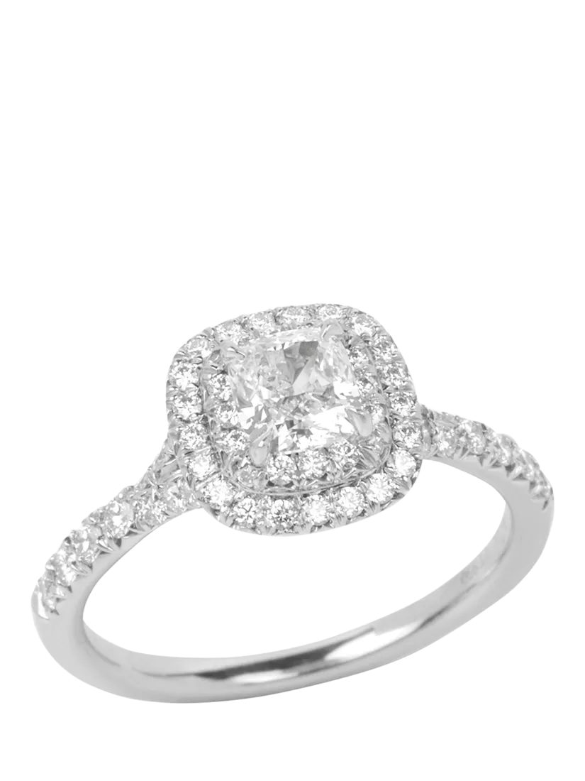 The Tiffany Soleste range is renowned for its intricate designs, featuring a signature halo setting that creates a sparkling surround, emphasising the brilliance of the central gemstone.