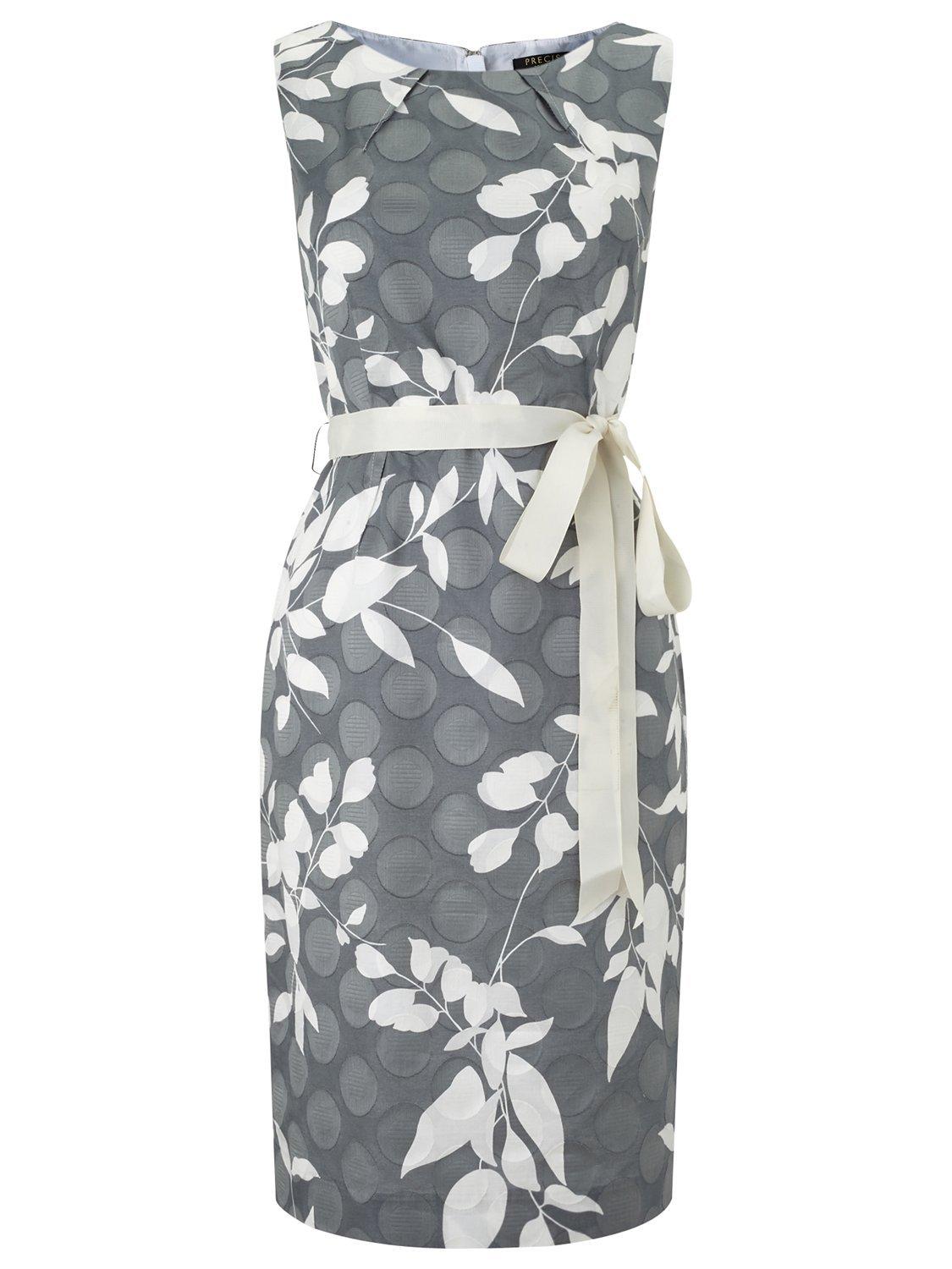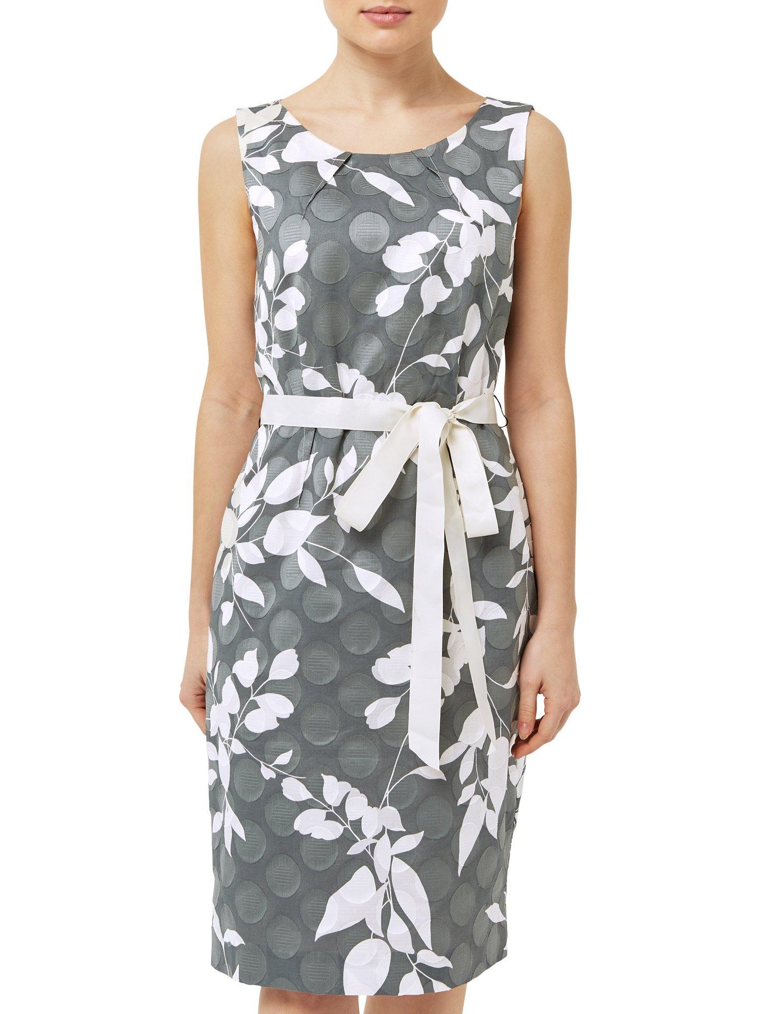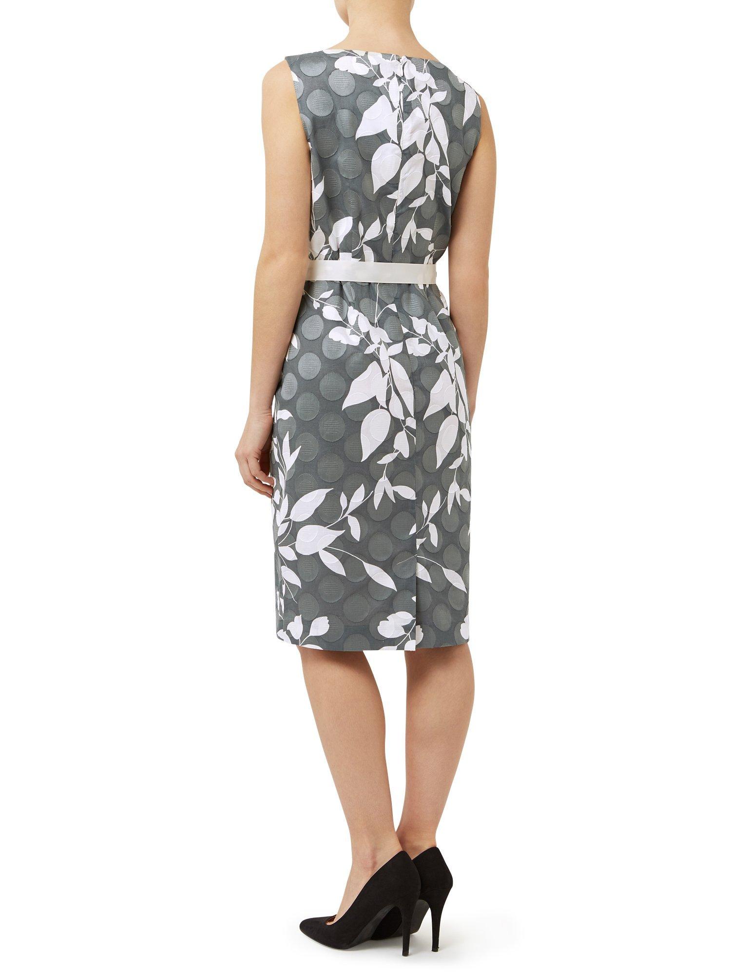 Adorned with a striking spot print with contrast floral silhouettes, team with point heels and a clutch for a modern, chic look that works for both day and evening.
