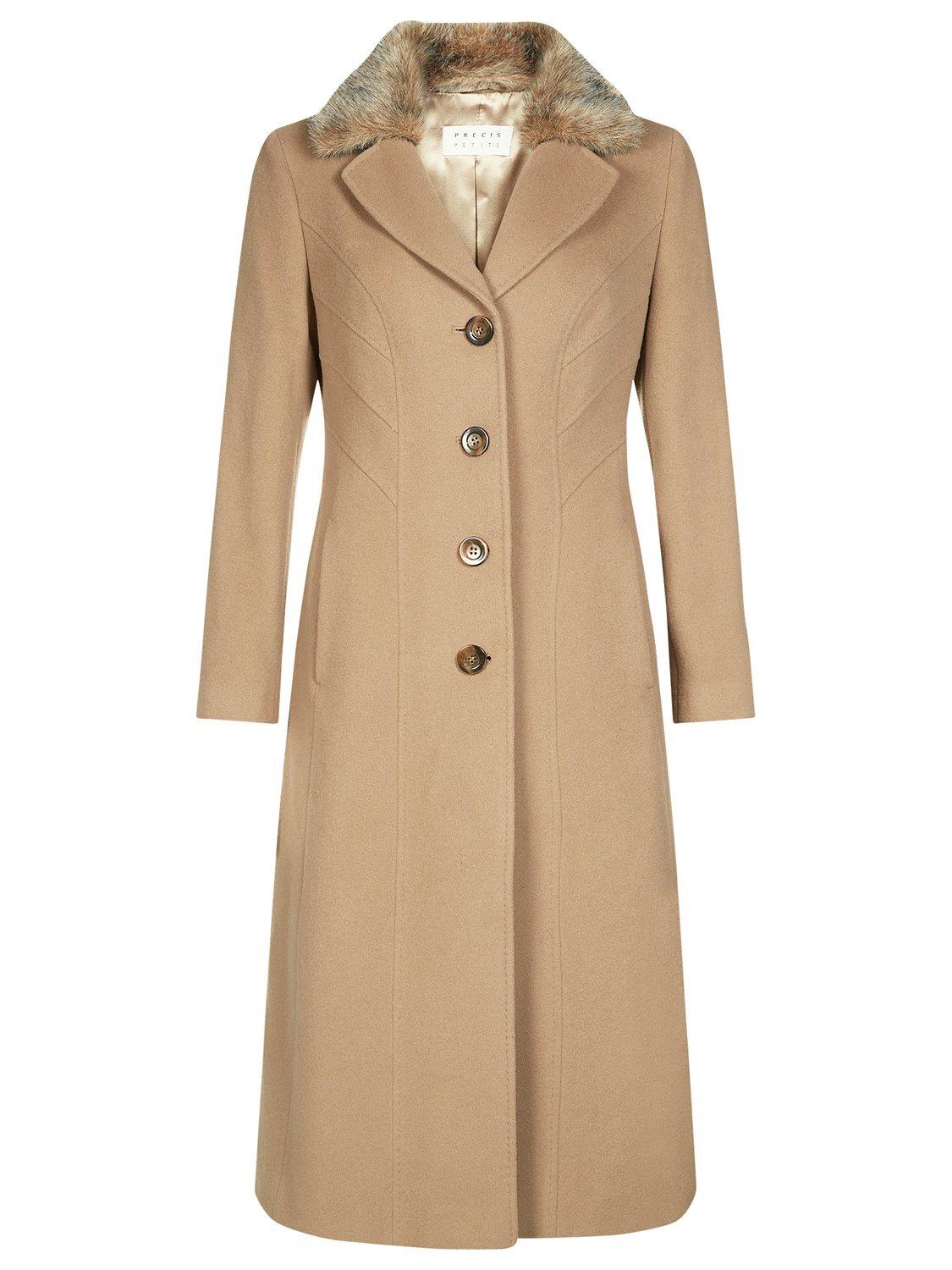 This long-length wool coat from Precis is perfect for a feminine and petite frame.