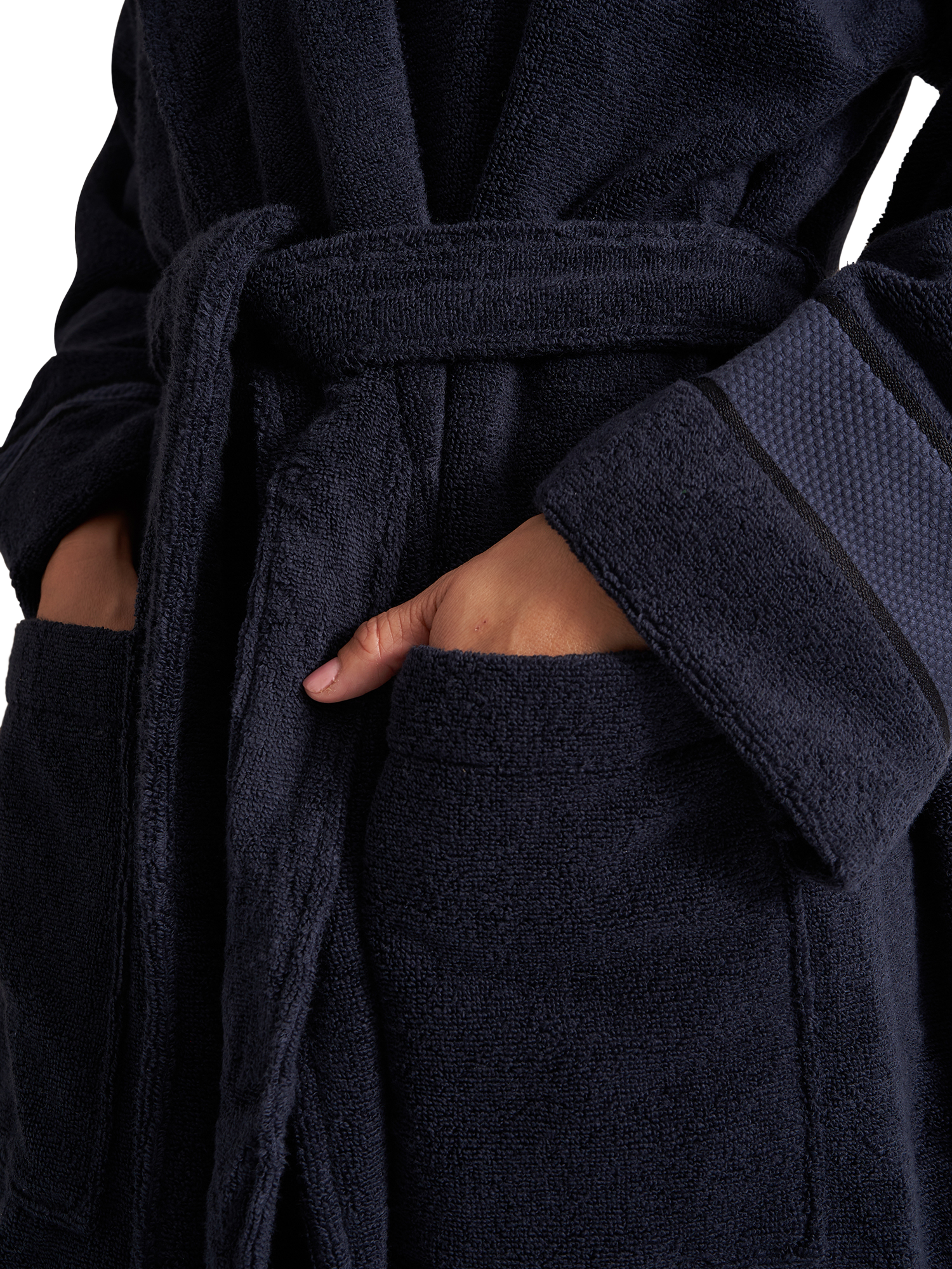 Indulge in ultimate luxury with this premium Bamboo Towelling Robe, meticulously crafted for superior comfort and style. This ultra-luxurious robe ensures an unparalleled lounging experience with features like an internal tie for extra security, an adjustable waist tie for a snug fit, and a tonal feature panel on the sleeves for added sophistication.