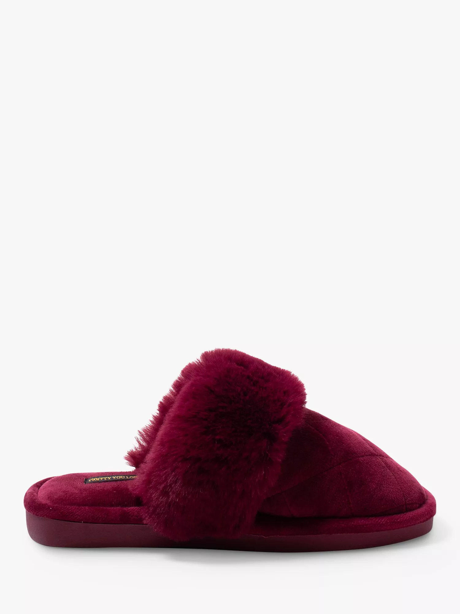 For padding around the house in style, these backless slippers by Pretty You London are stitched with textile uppers for a premium feel.