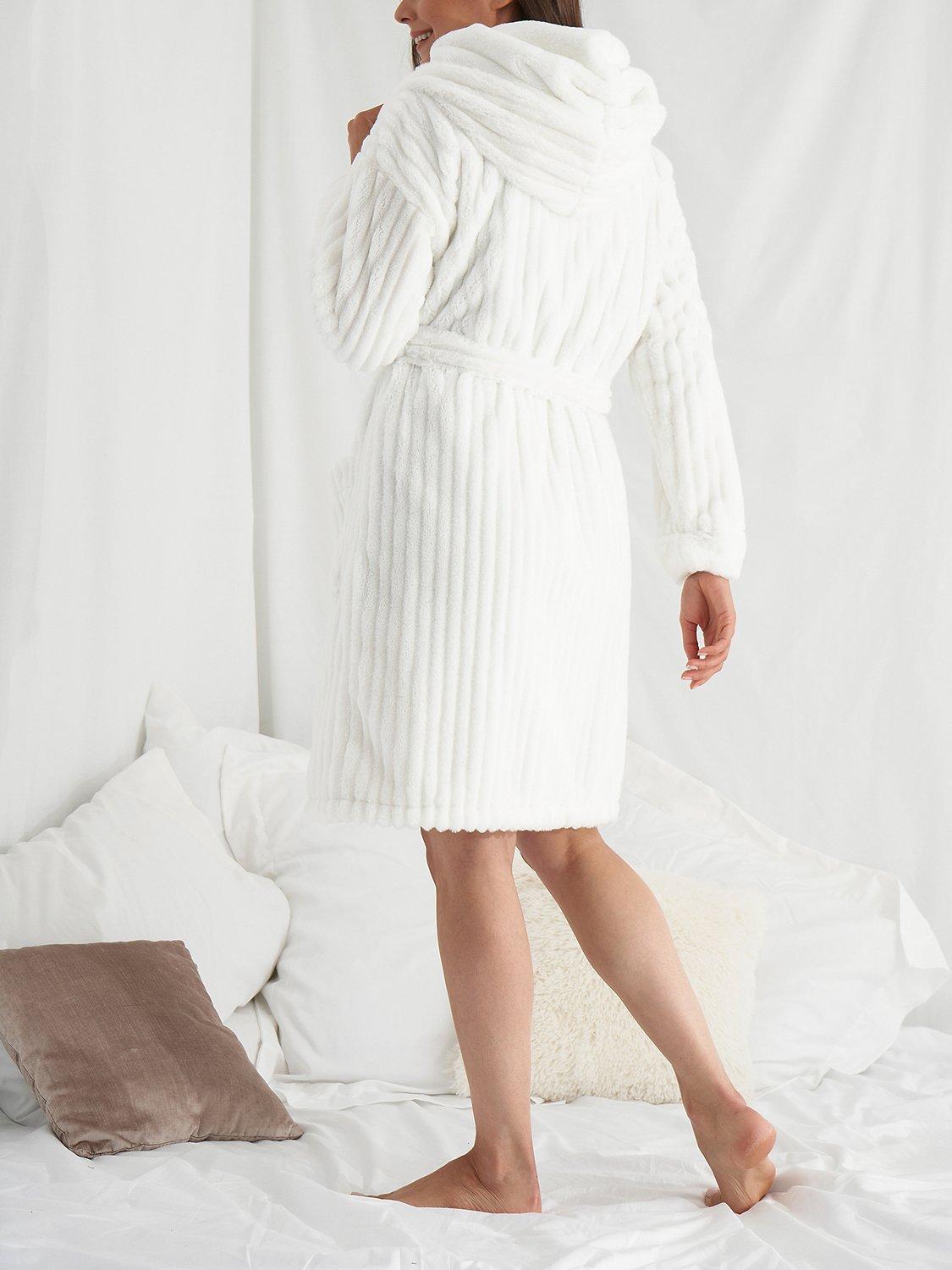 Accompanying you in style as you tuck into your toast and fresh OJ, this dressing gown from Pretty You London is made from a plain fluffy striped fabric.