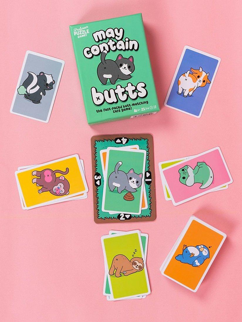 Race to react when you spot a front and butt match! May Contain Butts will keep you on the edge of your seat and have your barking like a dog as you look out for matched of goats, sloths, parrots and more! Grab the most cards to claim victory in this butt-tastic card-matching game.