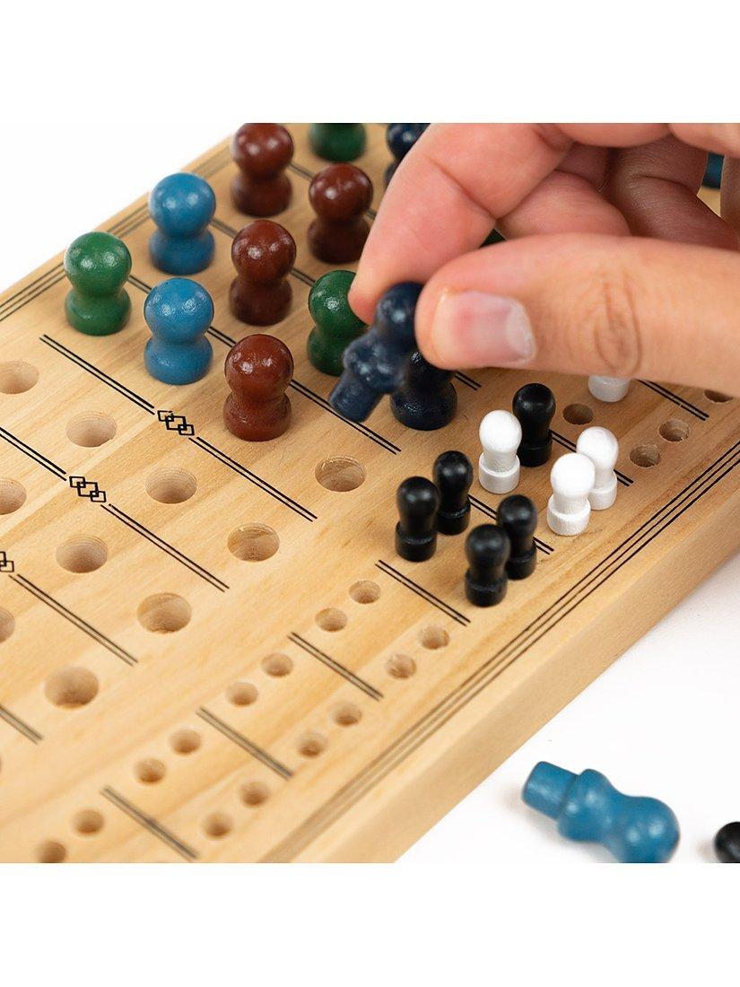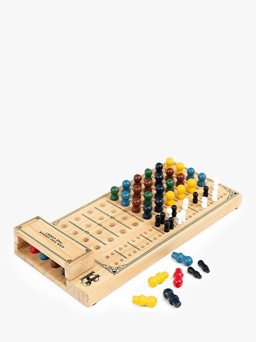 Holmes must deduce the correct order of four coloured pins hidden in the hooded section of a wooden box. But he has a mere twelve guesses to get it right. Can you help him solve the case?
