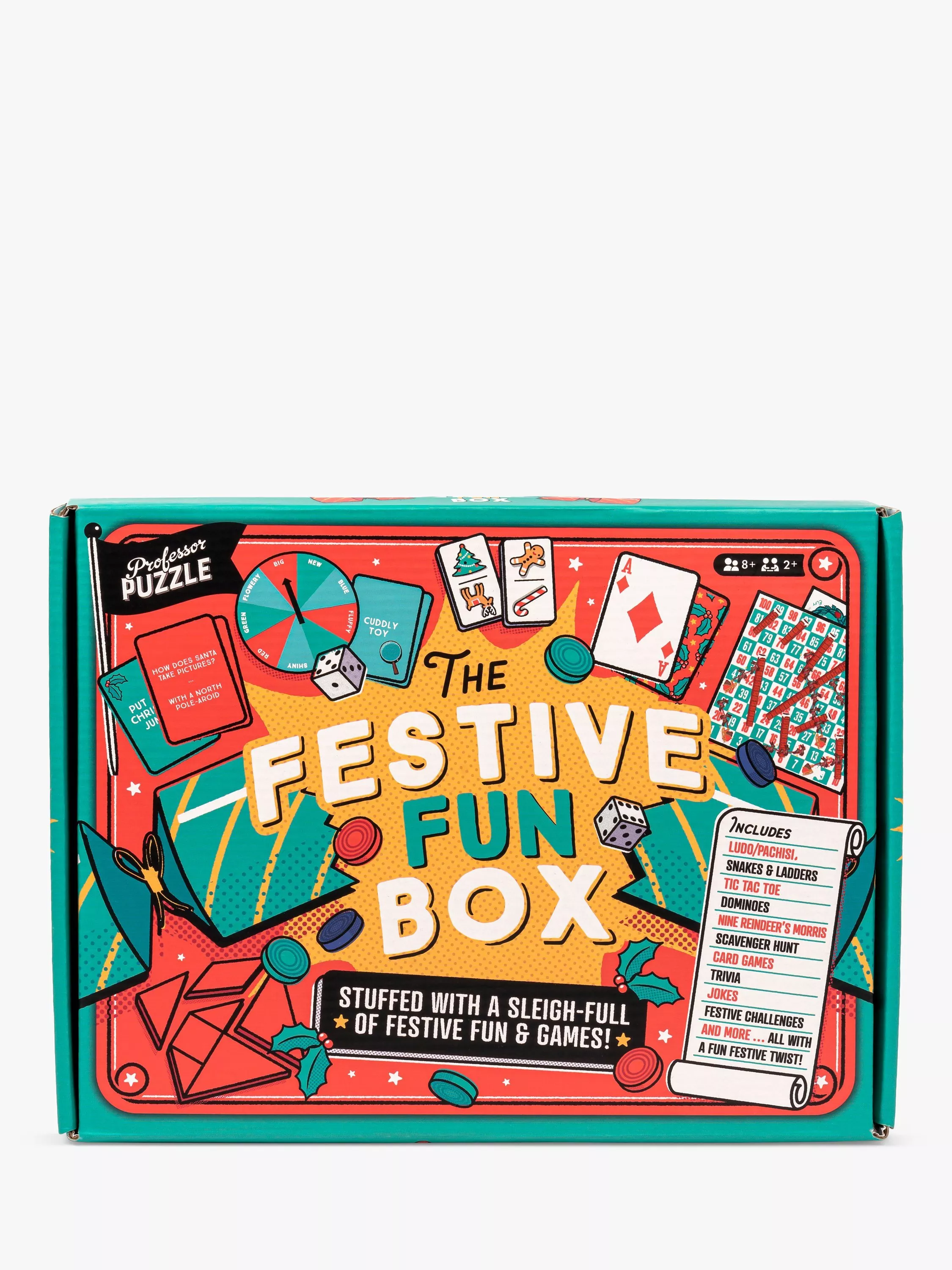 Kick off the festive season with this jolly box full of Christmassy fun and games! Has enough activities to keep all of Santa's elves and reindeer entertained, and Mrs. Claus too. The set is complete with two reversible game boards, playing cards, challenges, jokes, scavenger hunt cards and more, all with a merry twist! Keep this kit tucked away under the tree, ready to play on the big day, or enjoy throughout the season to get you in the spirit!