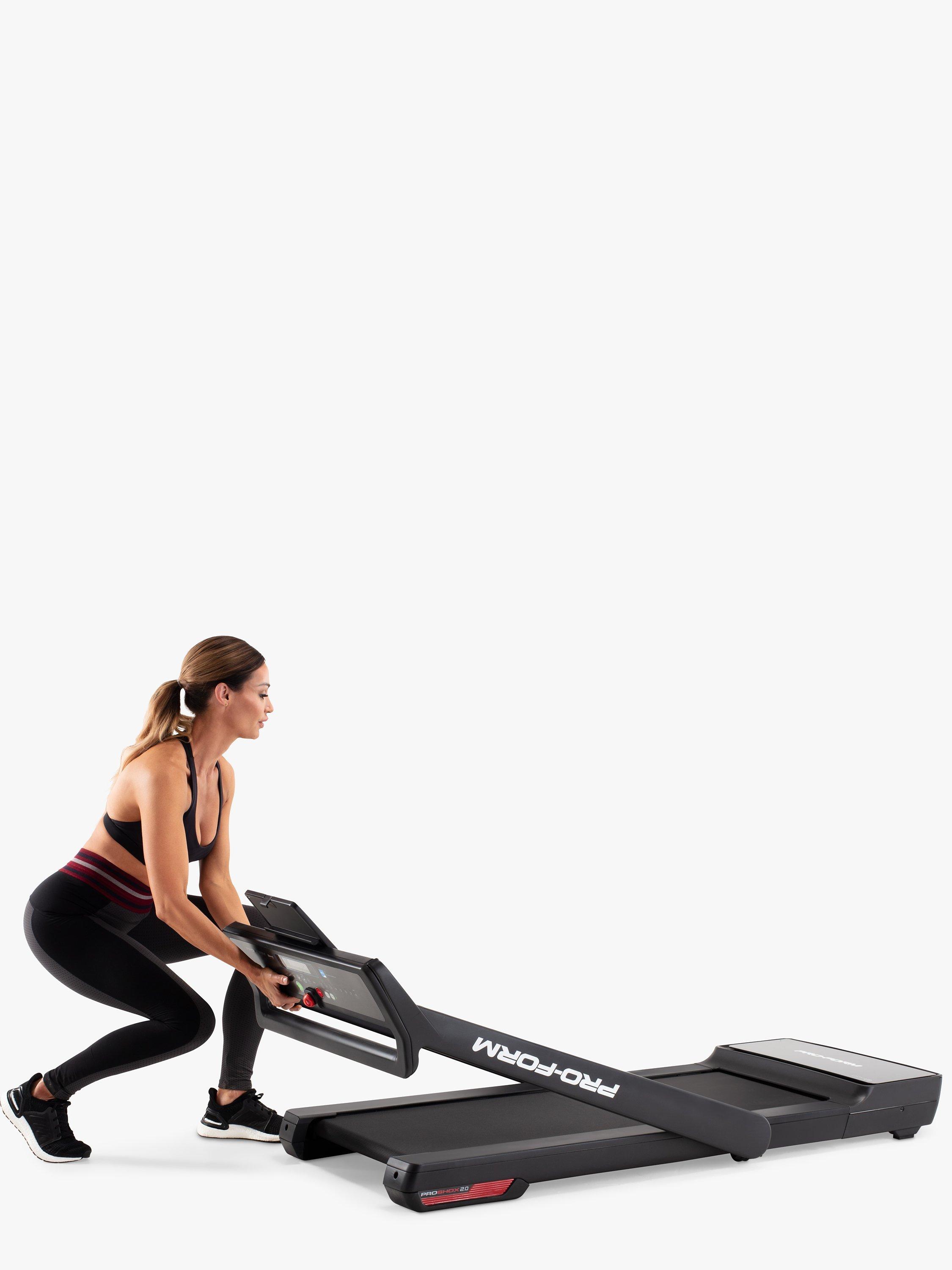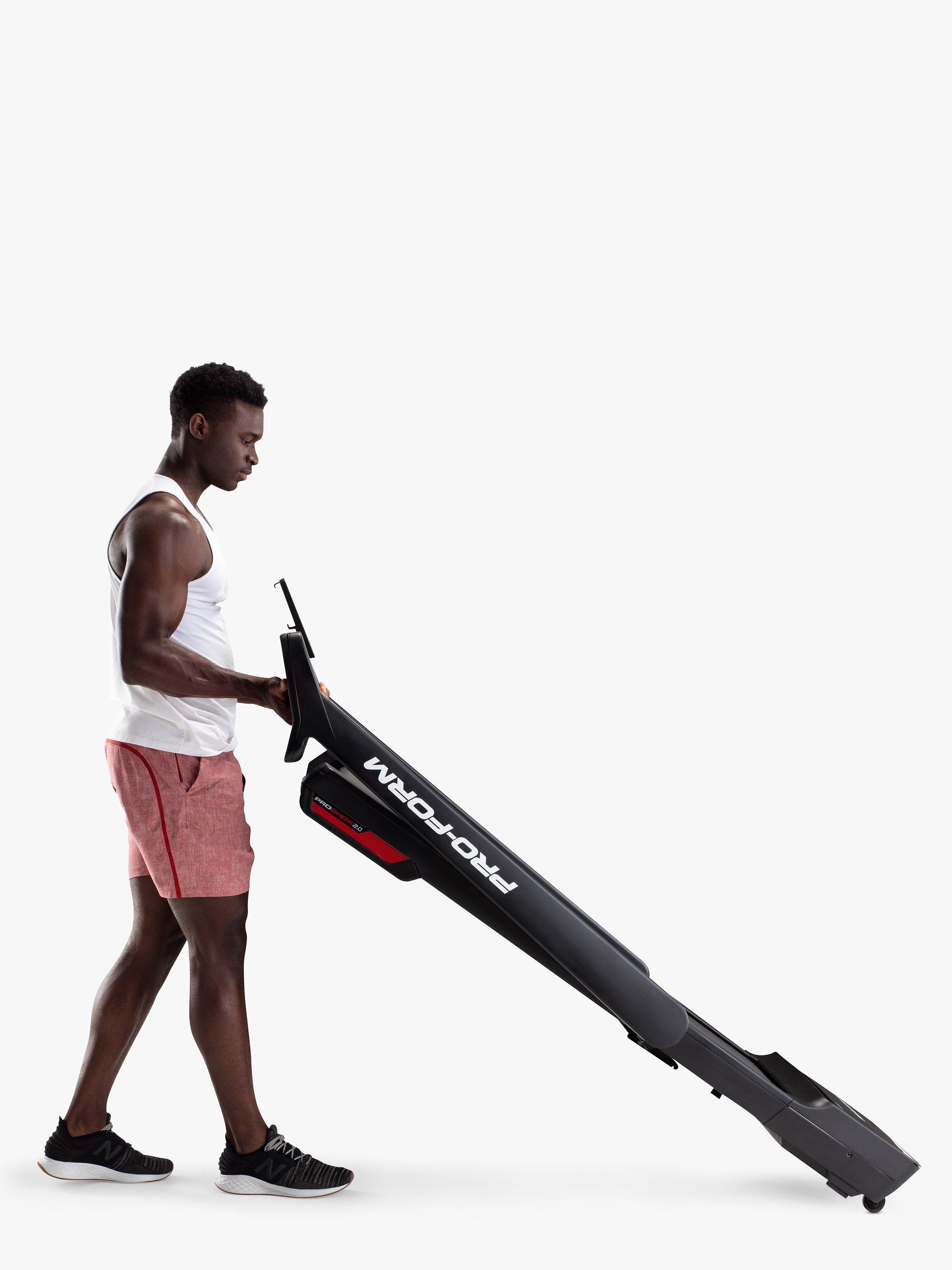 When the workout is over, simply fold your treadmill deck up and out of the way for compact, convenient storage.