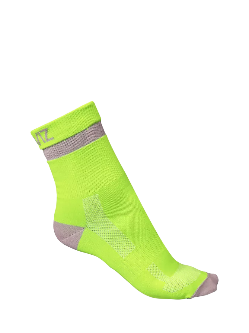 Find just the right level of comfy support to keep your feet happy on your runs. These short Proviz socks are cut to just-above-the-ankle length, with reflective yarn integrated at the cuff, and lycra bands to optimise the fit. Super-thin construction ensures enhanced feeling, plus air vent channel stitching on the upper foot, and extra lycra on the arch for added support.
