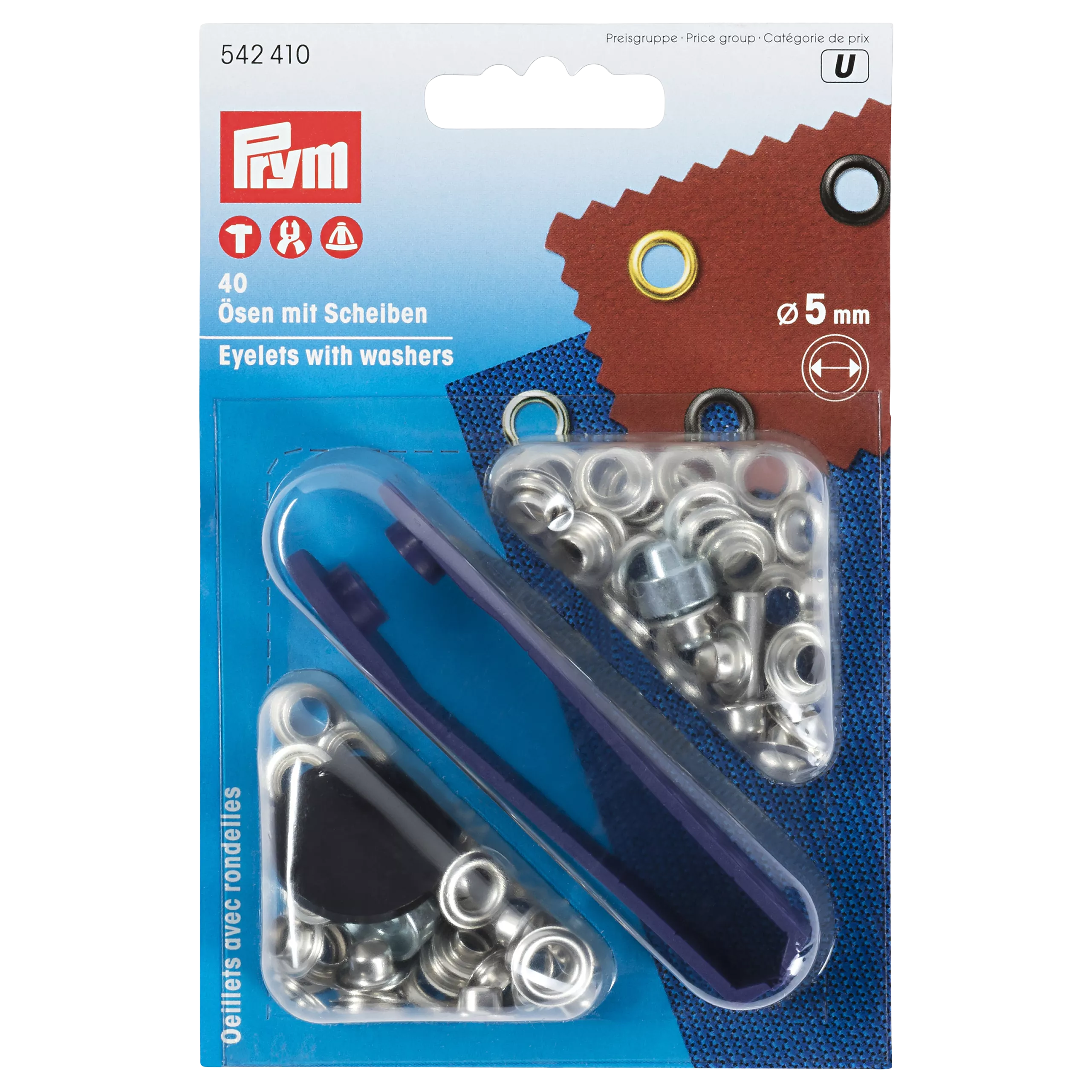 These rustproof eyelets and washers from the Prym range are silver-coloured and made from brass.