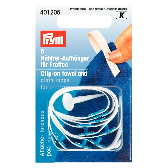Polyester tape loops with press fasteners, suitable for towelling items.