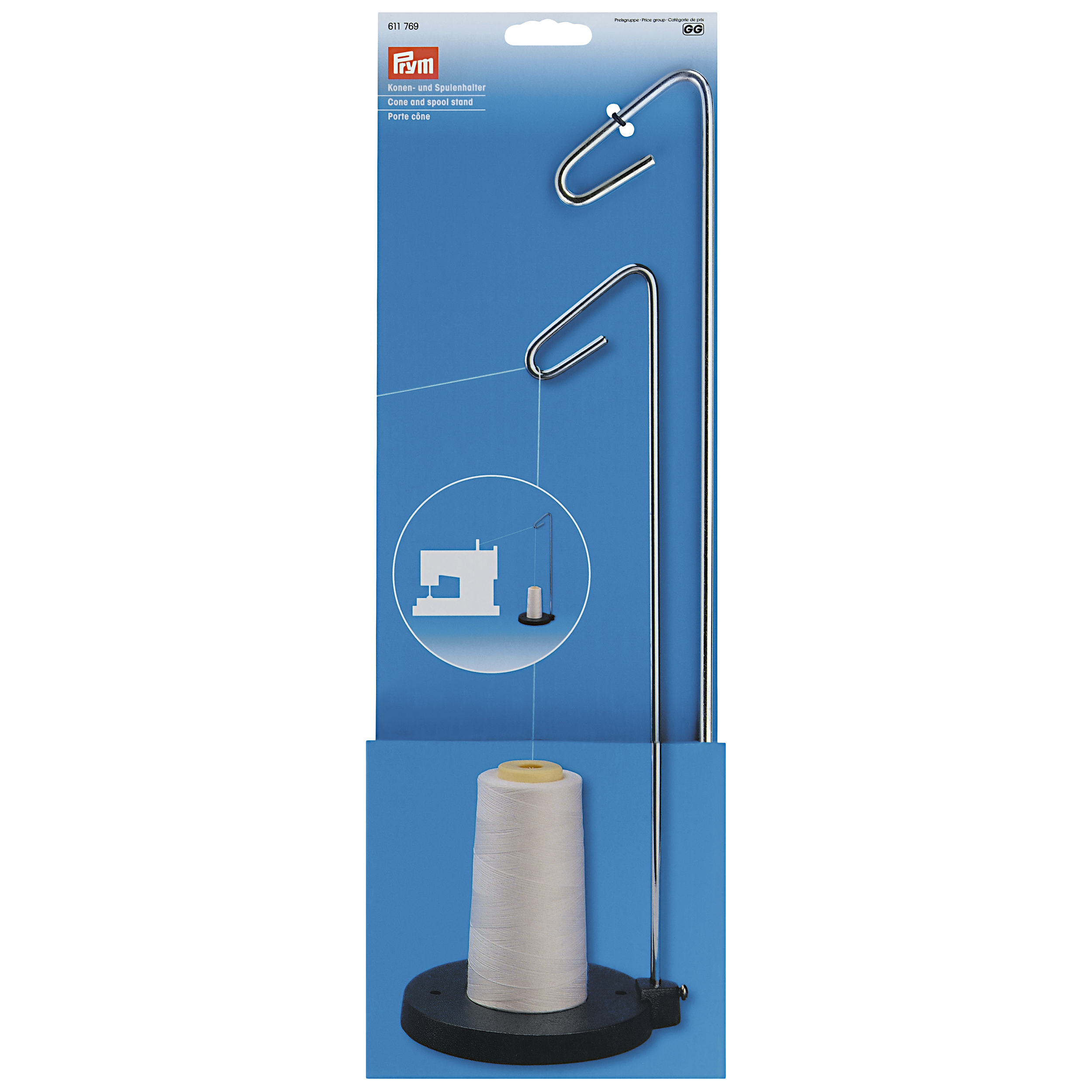 This cone and spool stand is a must-have gadget for avid sewers. It makes light work of unwinding thread cones and large thread spools which are too tall to fit on the sewing machine. You'll wonder how you ever coped without it!