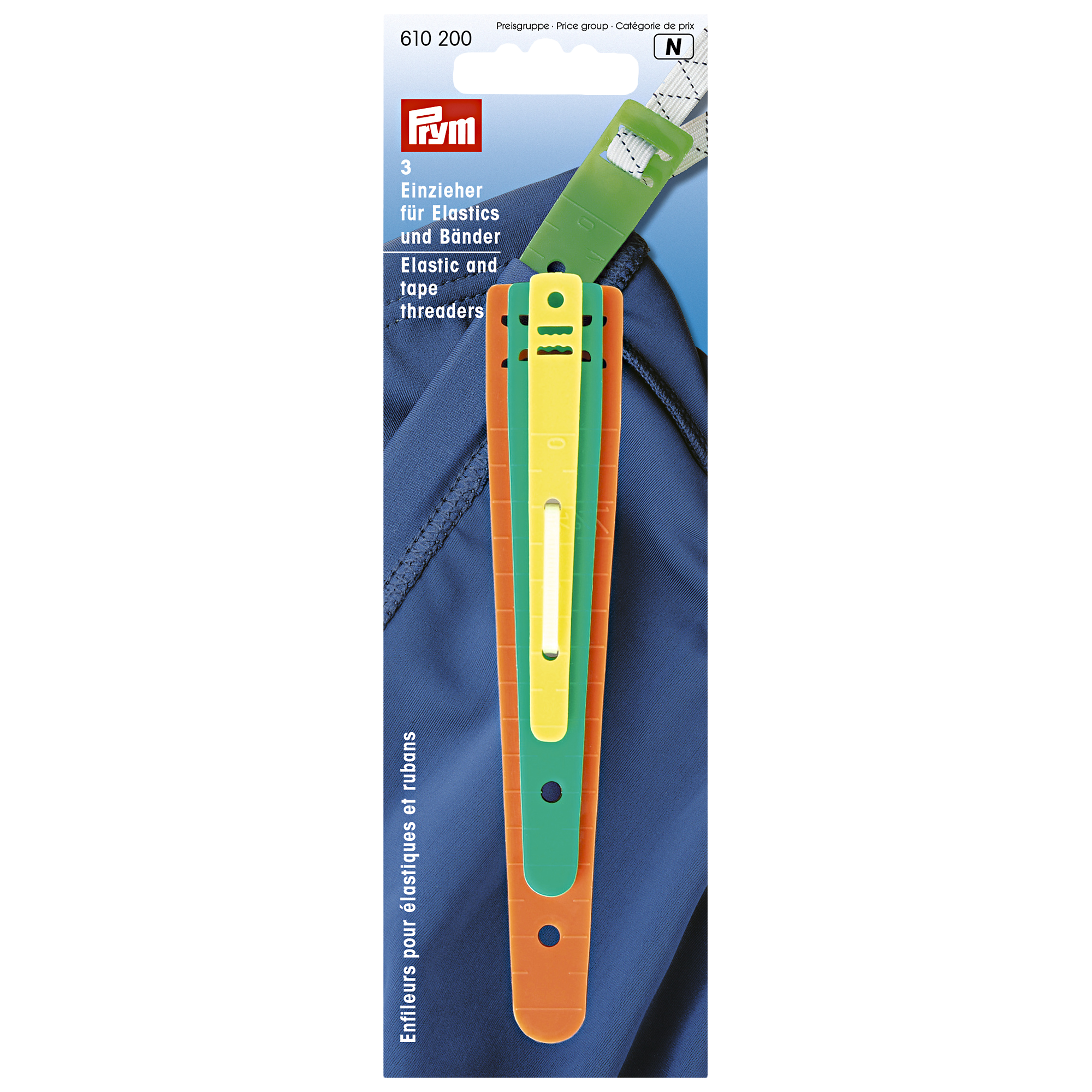 These useful elastic and tape threaders from Prym can be used to pull elastic or cording through fabric tubes.