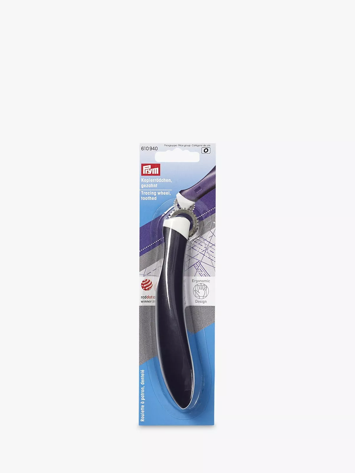 Trace pattern lines to paper and fabric with the ergonomic tracing wheel from Prym.