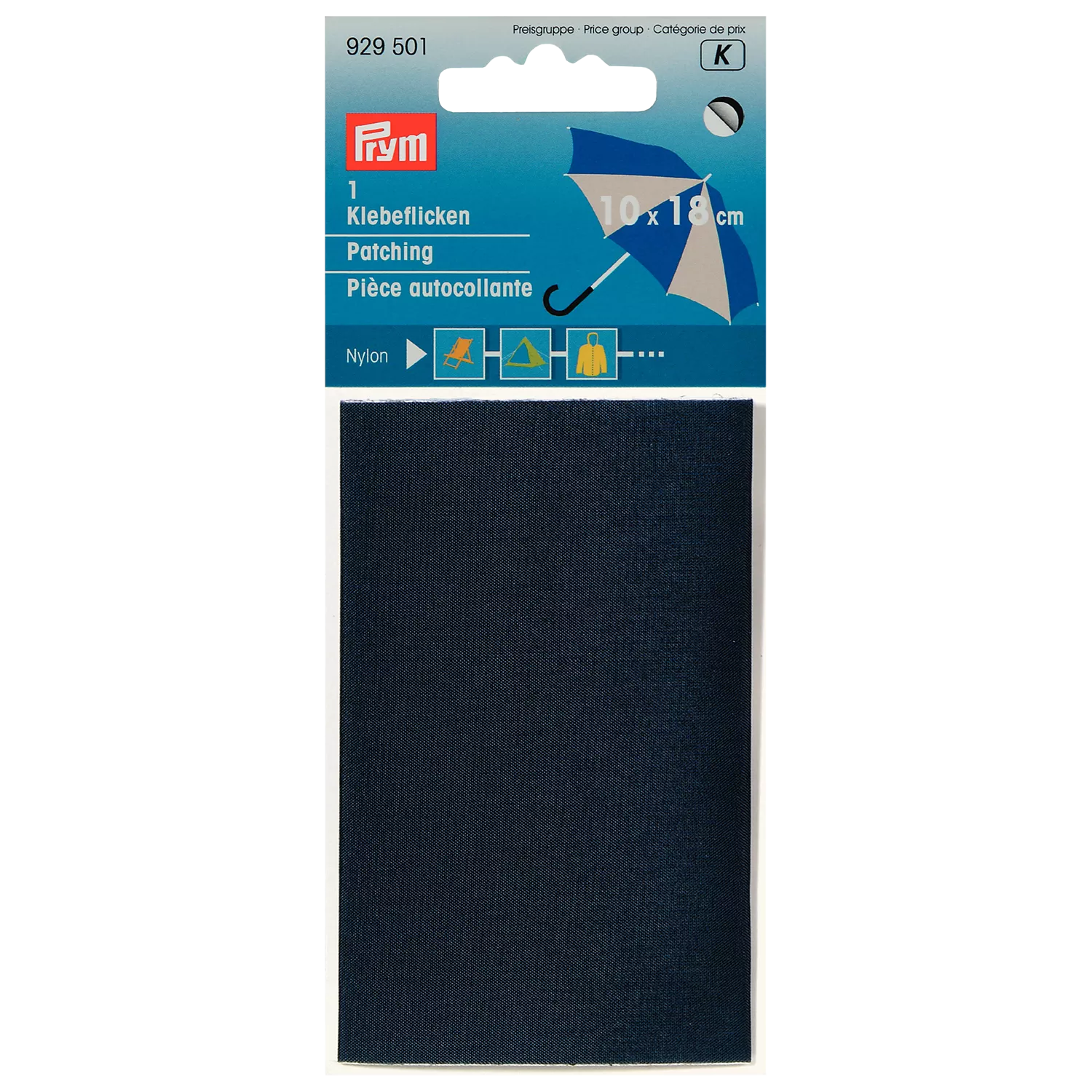 Easily repair holes in umbrellas, anoraks, sports jackets and camping equipment with this iron-on nylon patch from Prym.