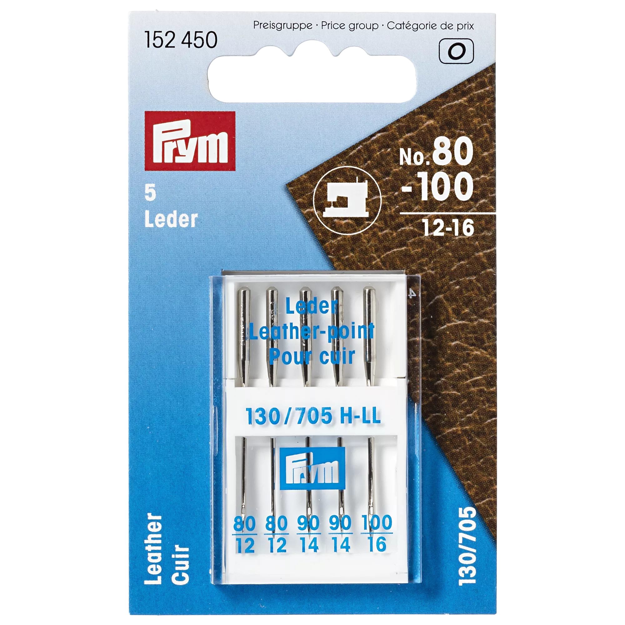 PrymLeather Sewing Machine Needles, Size 80-100, Pack of 5