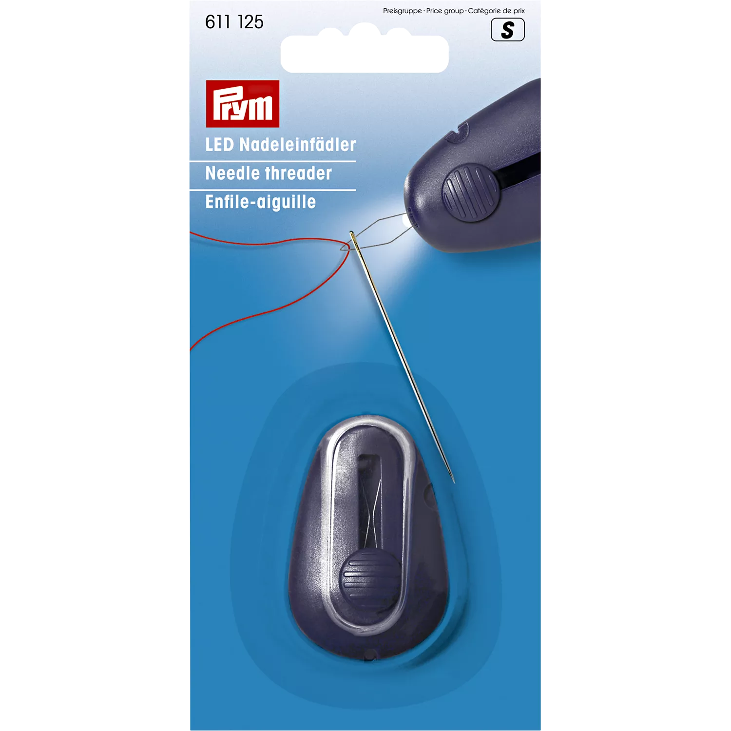This needle threader will facilitate threading with the aid of an LED light. It also boasts a mini thread cutter.