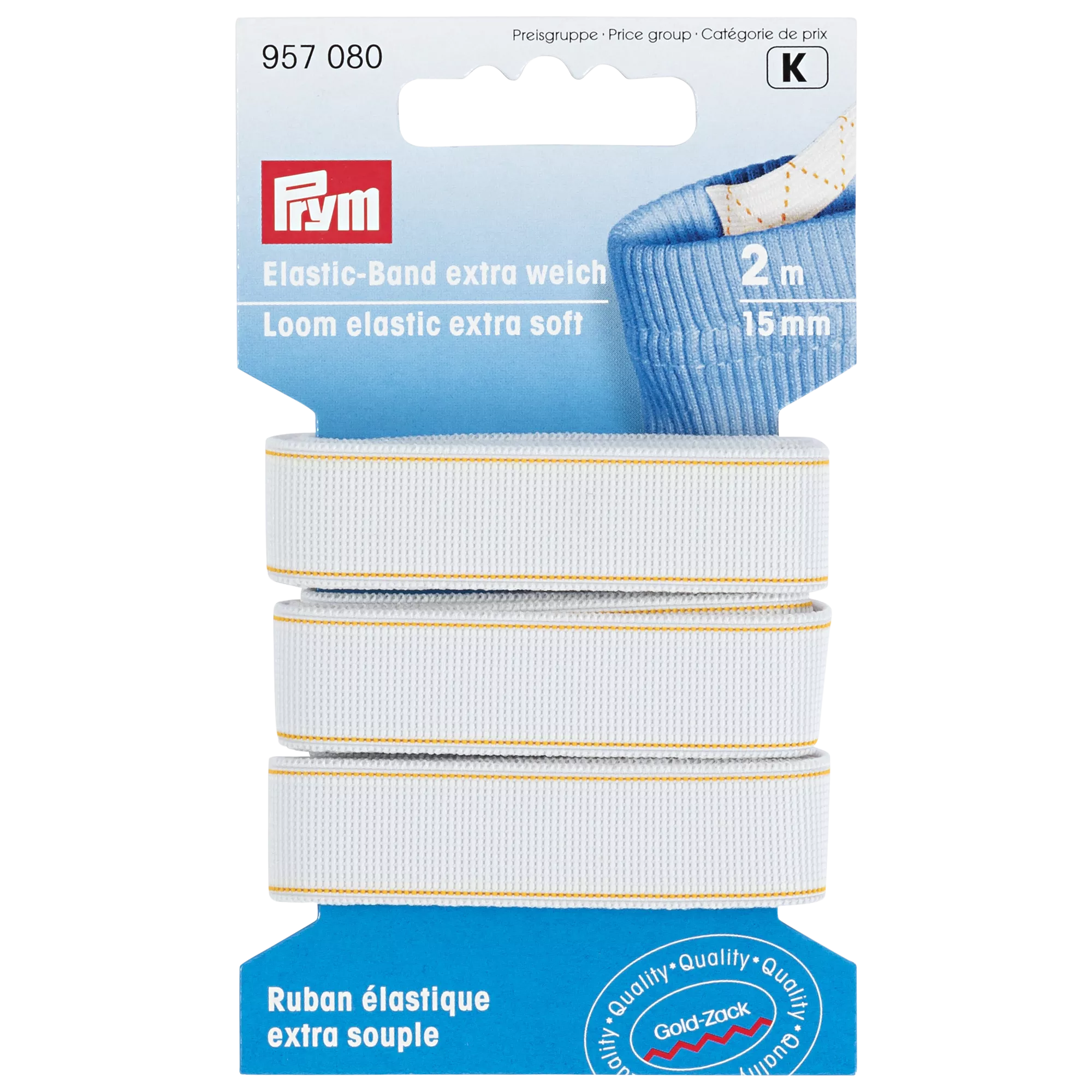 2 metres of white Gold-Zack loom elastic. This highly elastic product has a consistent width when stretched and does not roll up.