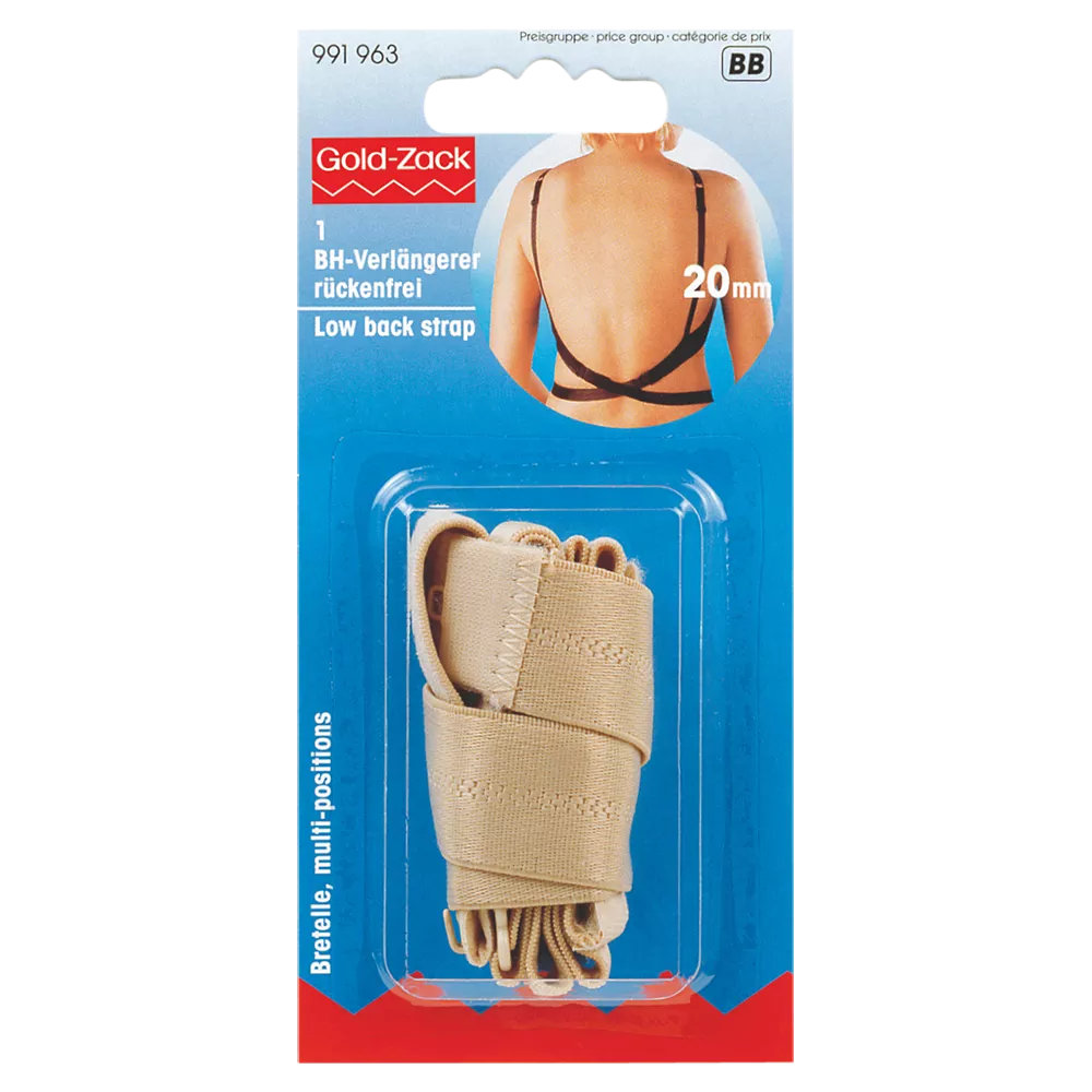 20mm wide low back strap with multi-positions, for wearing with low-backed dresses or tops. Made from 86% polyamide, 14% Thanelast.