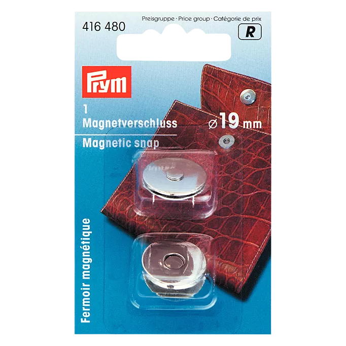 Magnetic snap fasteners from the Prym range for closing bags and rucksacks.