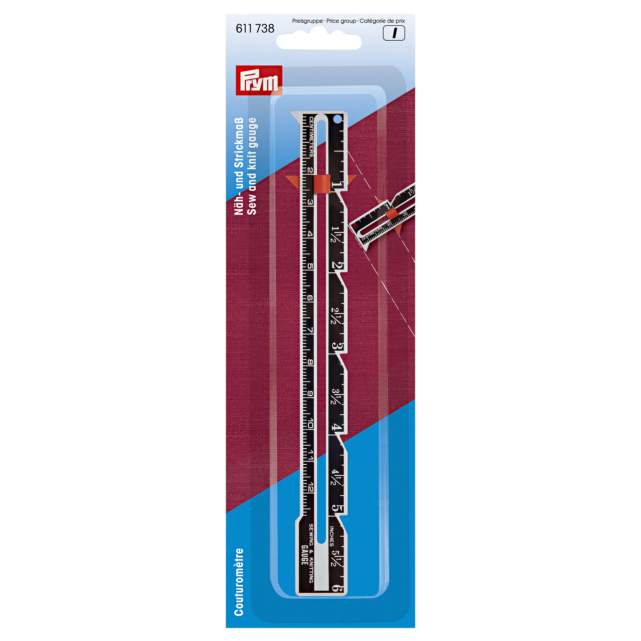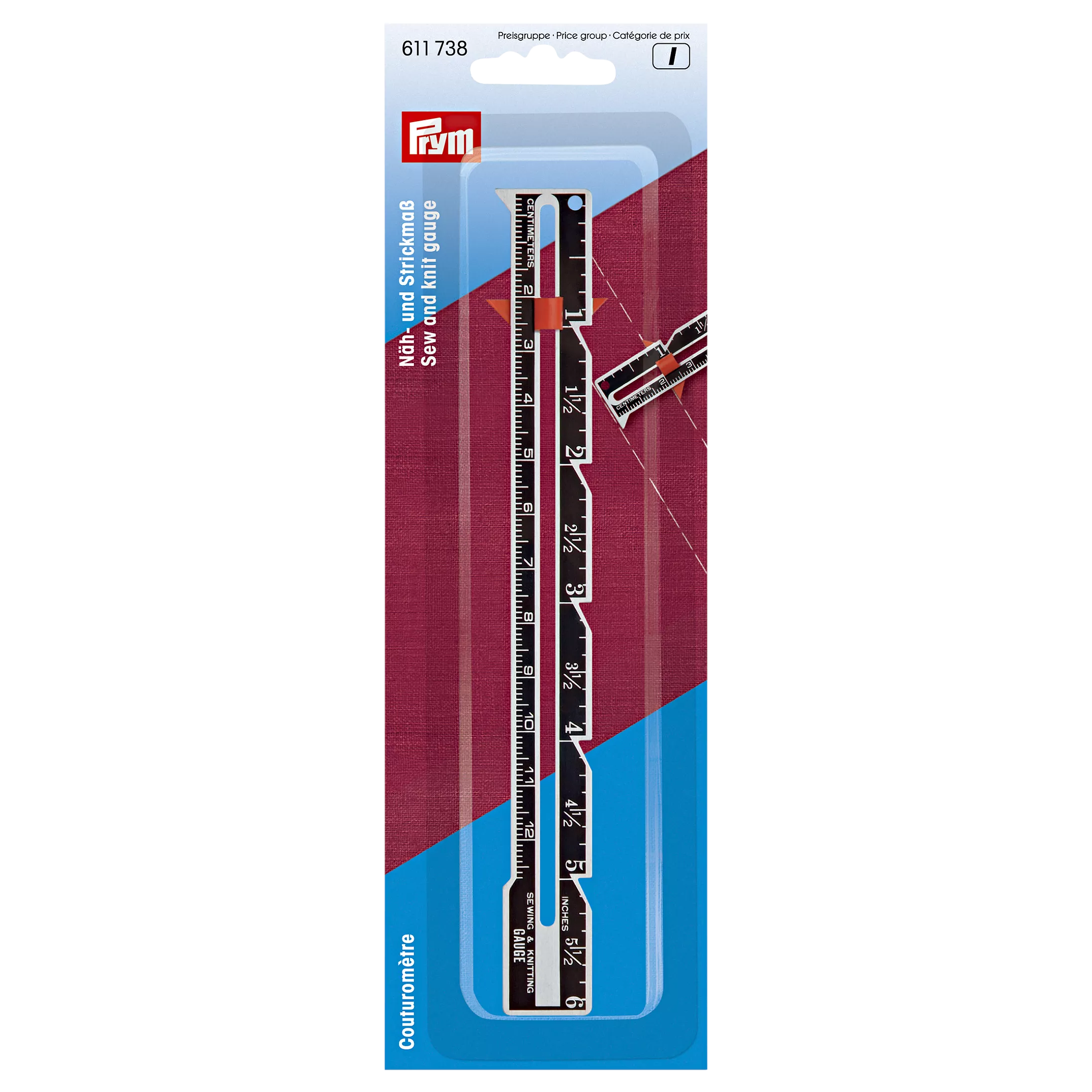 Prym's sew and knit gauge is for setting, measuring and marking any measurement. Circles and distances between buttonholes can also be quickly drawn with this handy tool.