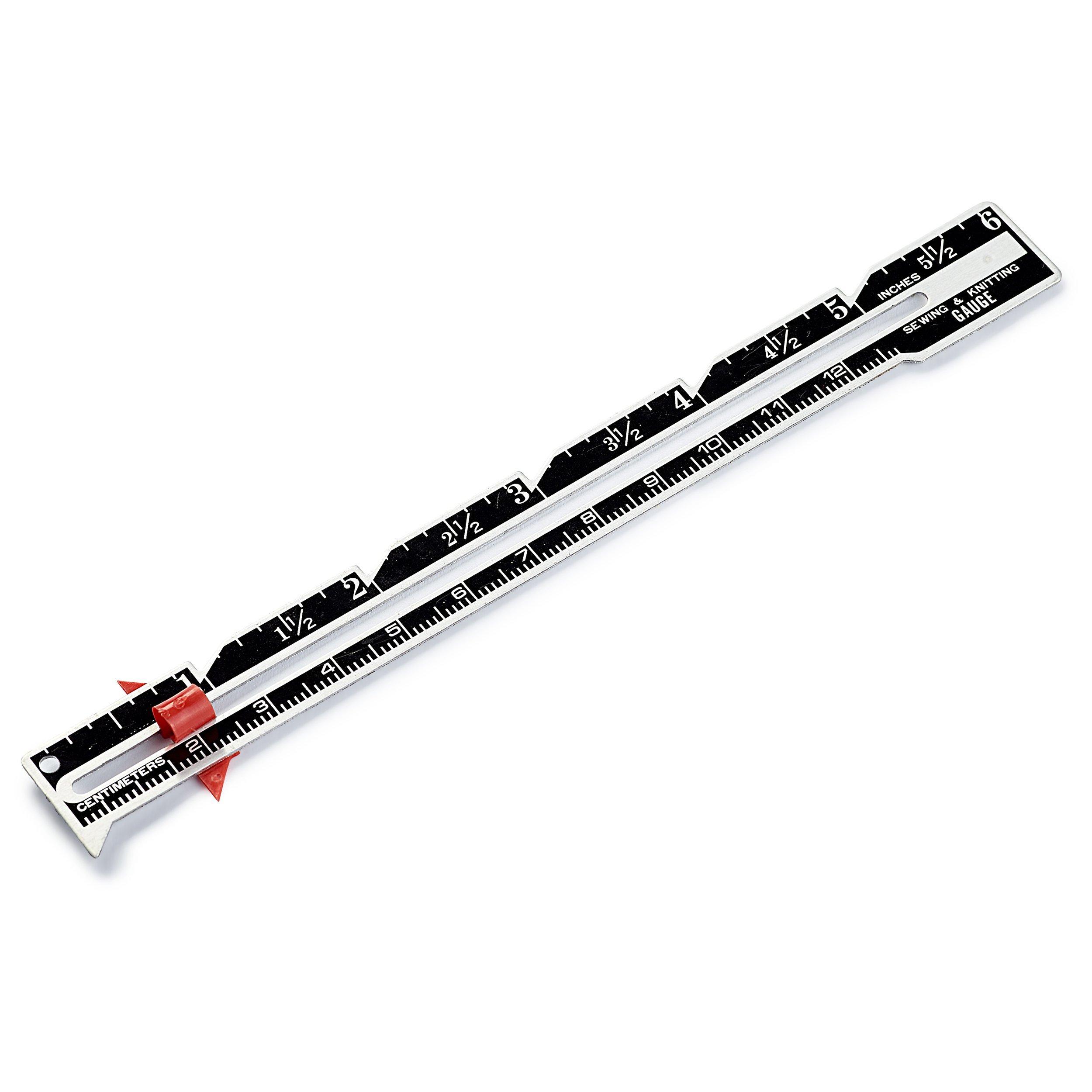 The sew and knit guage shows both centimetres and inches.