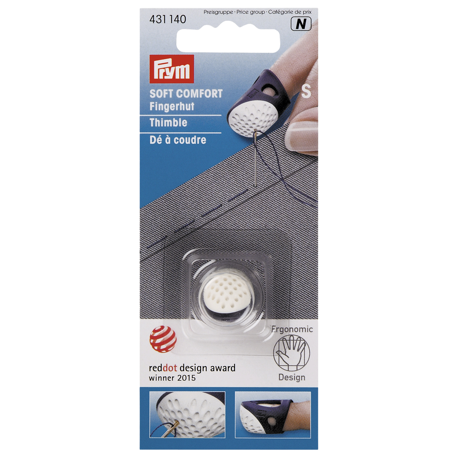 Keep your fingertips protected from errant needles with this specially designed thimble from Prym.