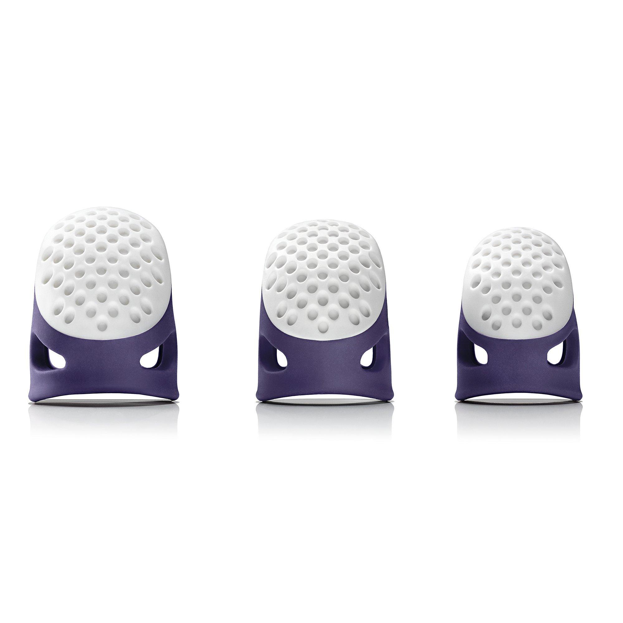 Perfect for protecting your fingertips and catching and pushing needles, this ergonomically designed thimble is soft and comfortable to wear enabling you to sew in confidence. Size small.