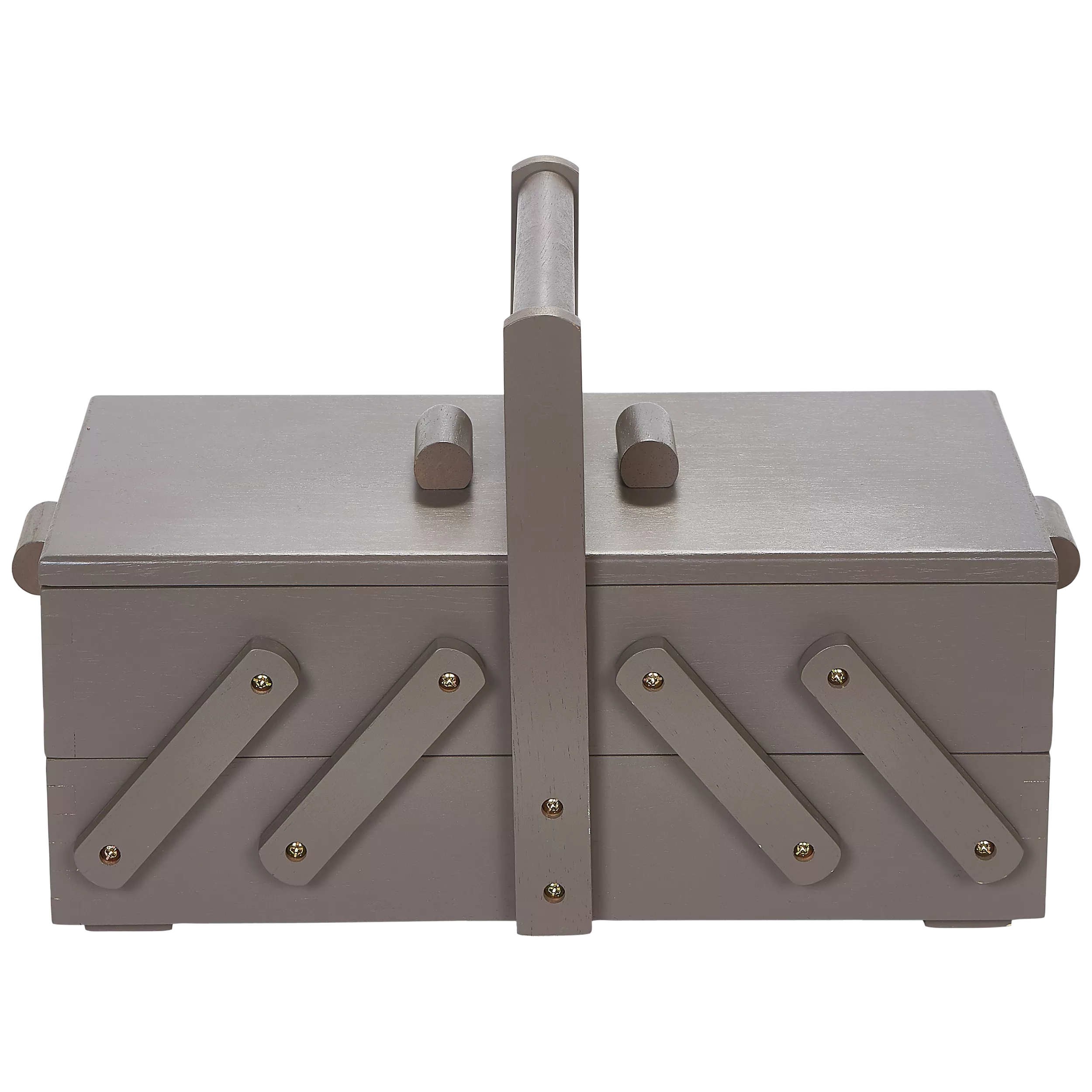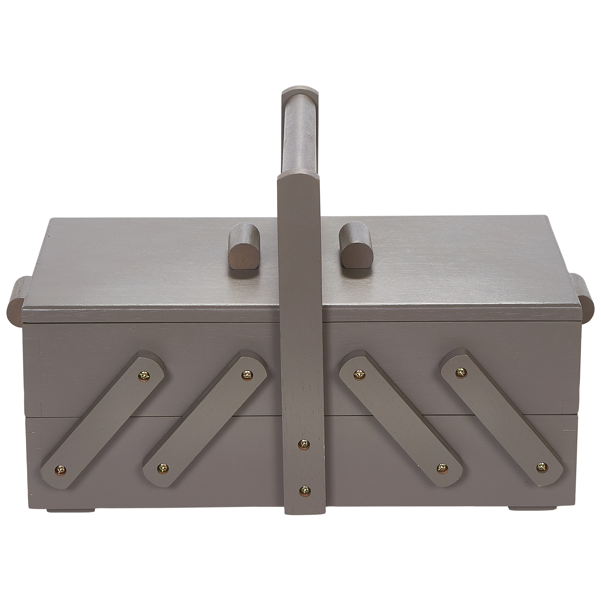 Crafted from a sturdy wood, this box features concertina drawers with plenty of space to store small essentials such as scissors, thread and needles plus a carry handle for portability.