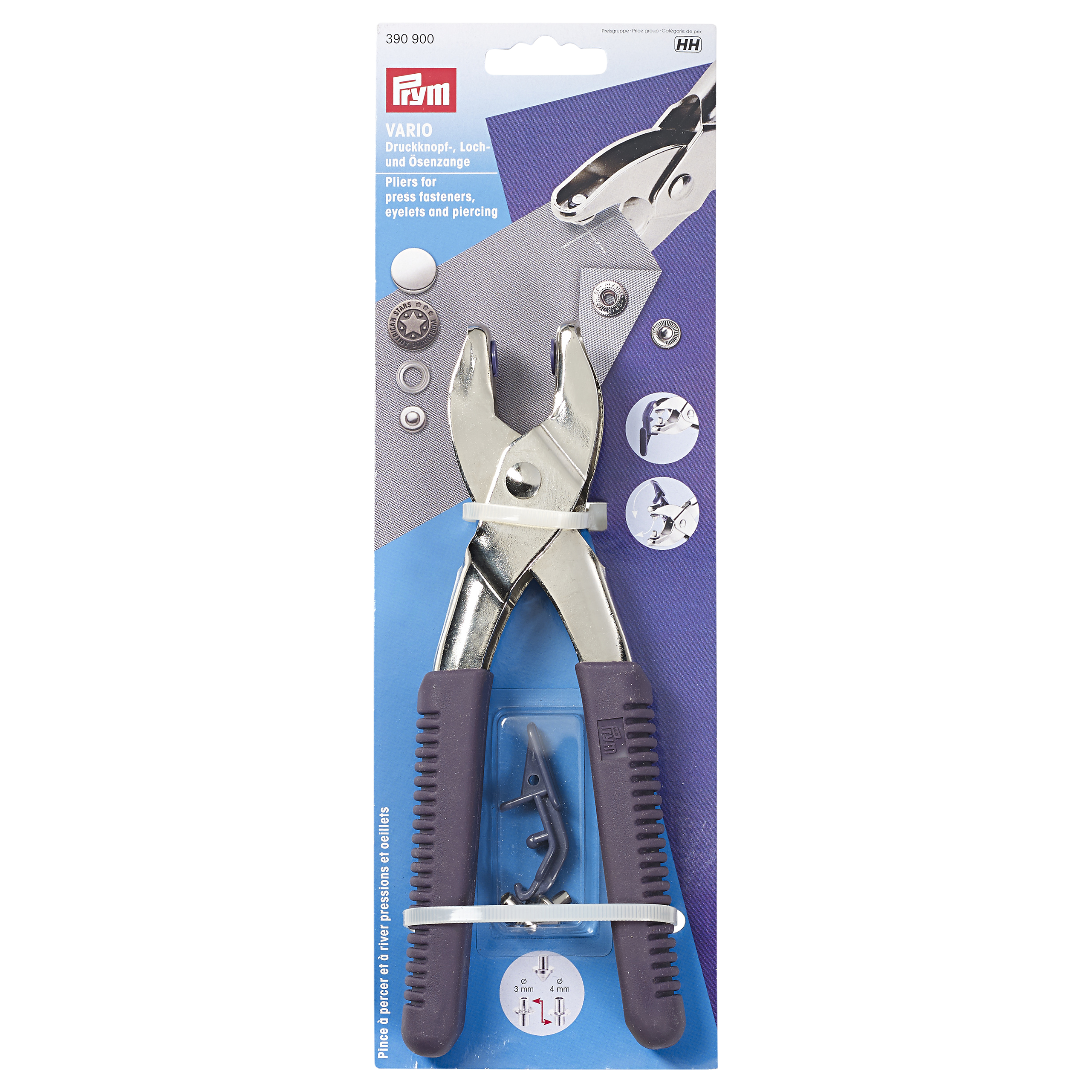 Prym Vario pliers are for use with non-sew fasteners such as eyelets, fasteners and jean buttons.
