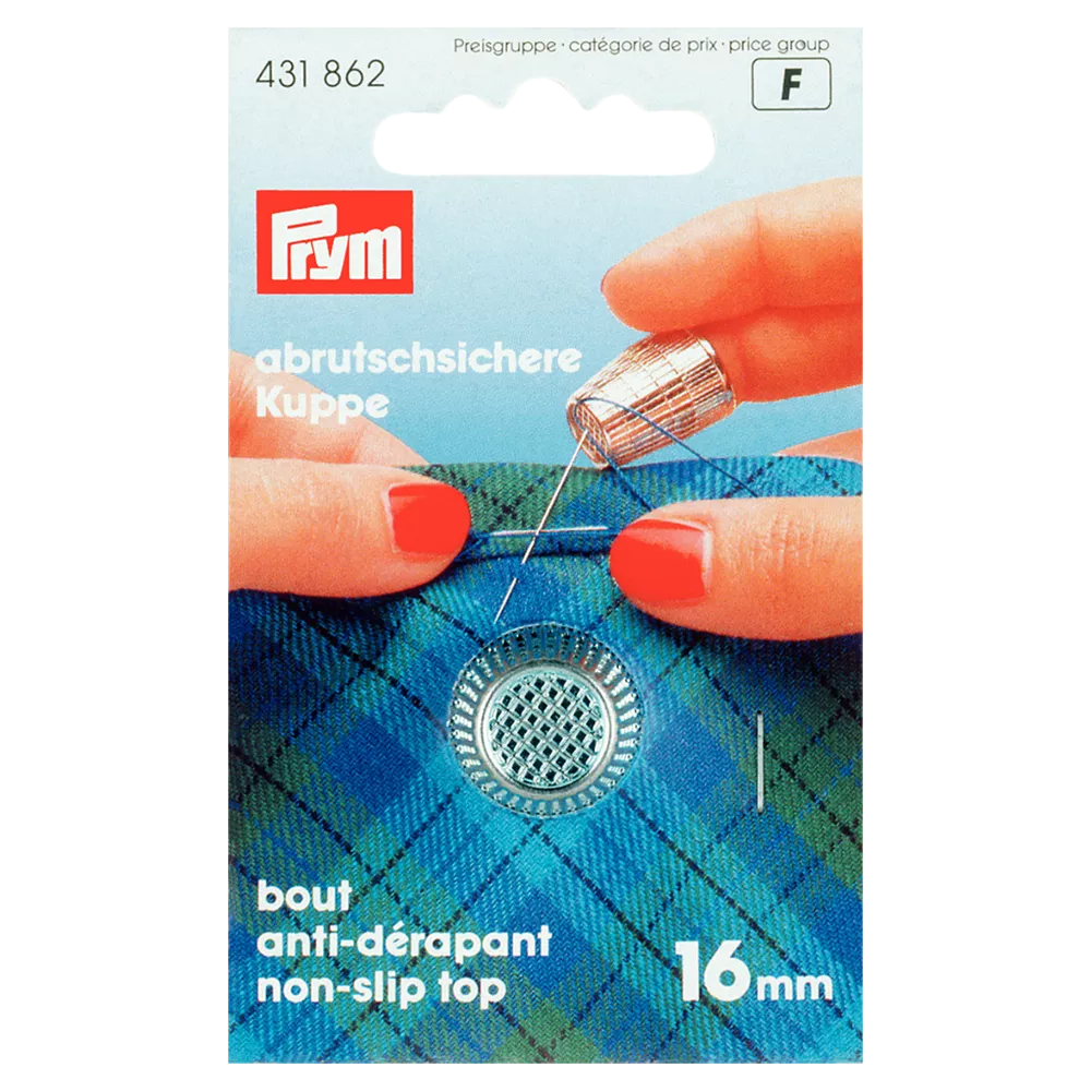 16mm, zinc die-cast thimble from Prym with non-slip edge. Silver colour.