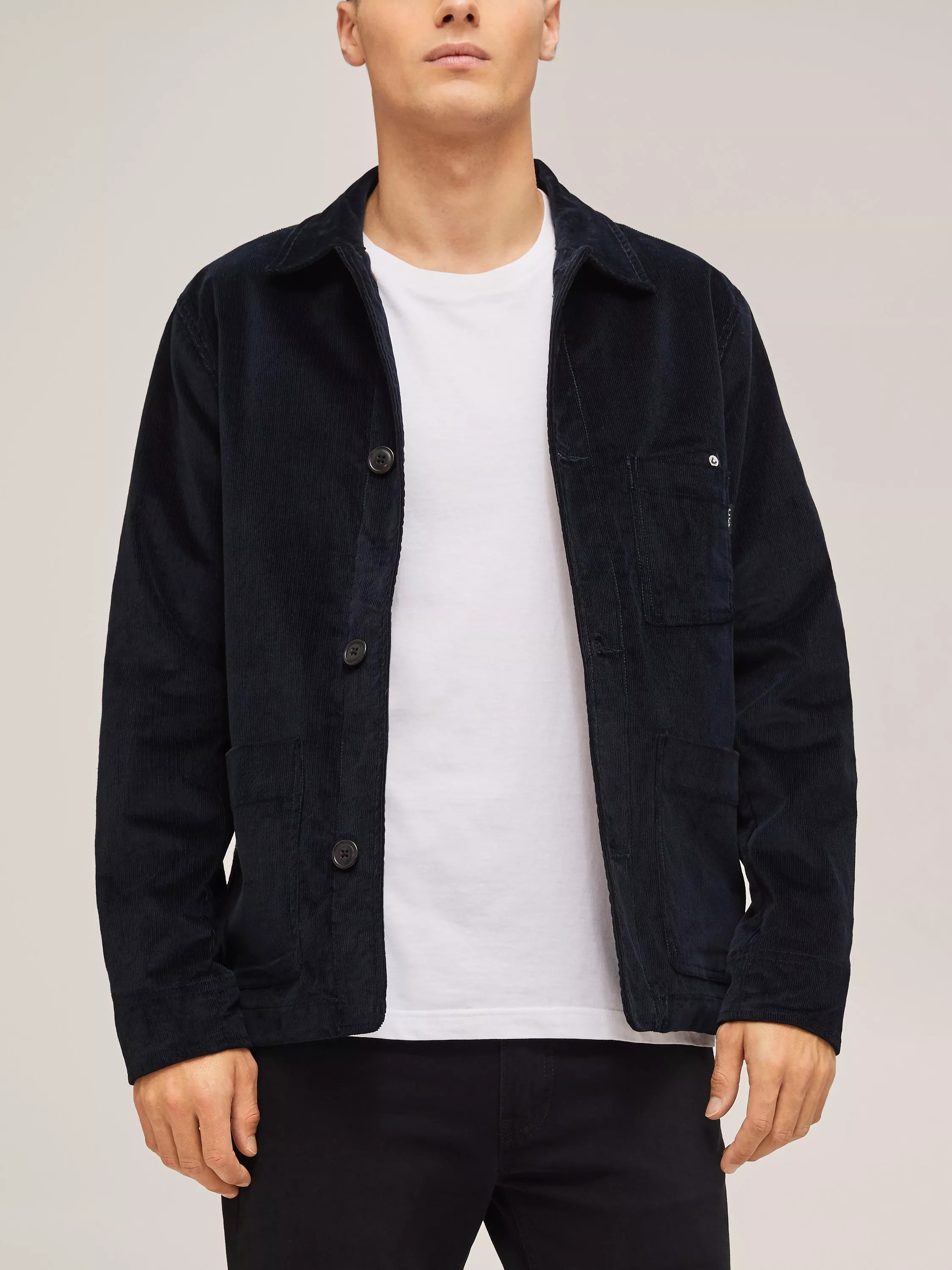 Add a casual layer to your wardrobe with this PS by Paul Smith Chore Jacket. Made from a lightweight stretch fabric, this jacket will see you through a number of seasons. It is designed with stylish pocket detailing, large button fastenings and a pointed collar. Wear with jeans and casual t-shirts for a contemporary look.
