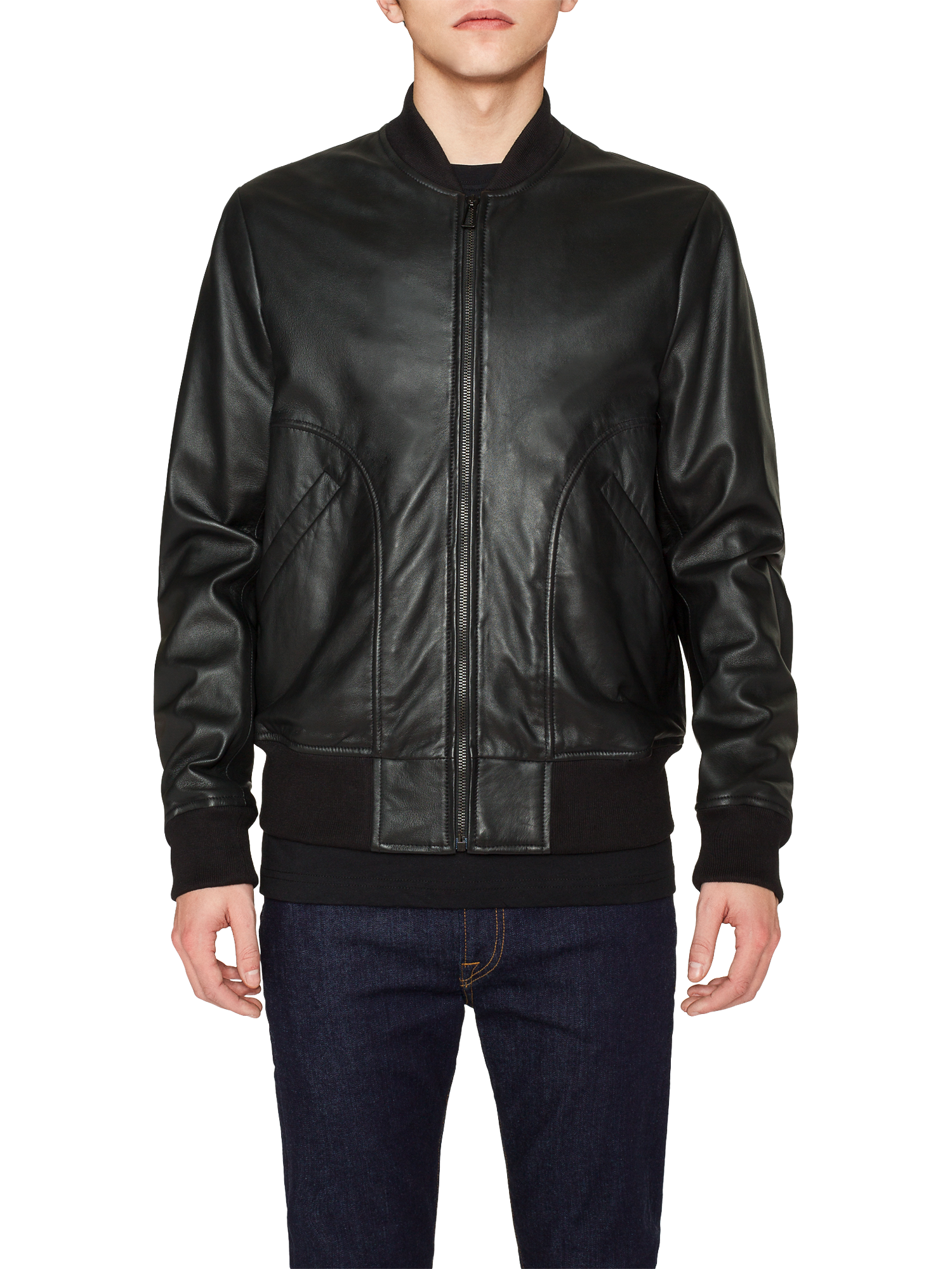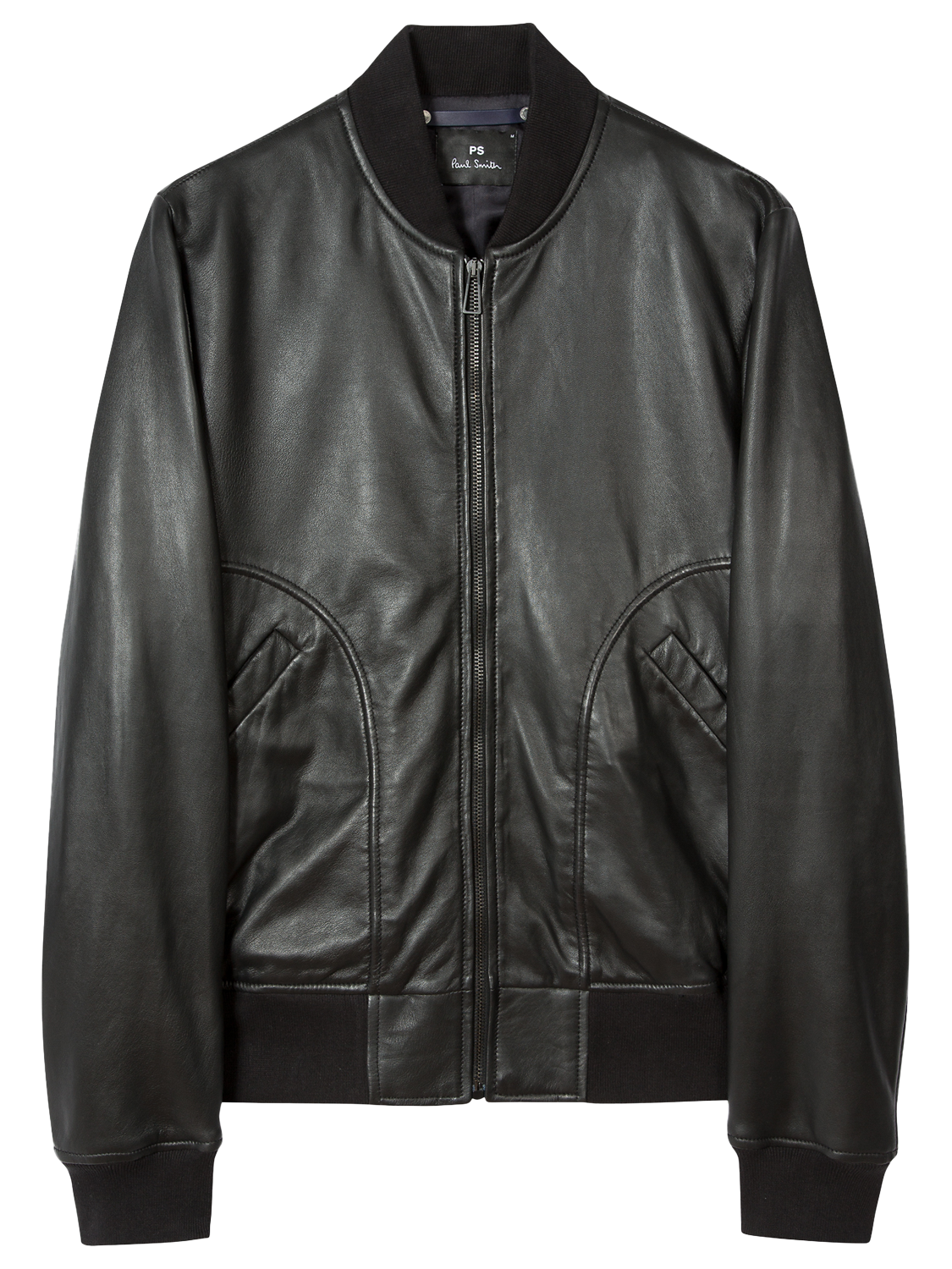 Paul SmithPS Paul Smith Lamb Leather Bomber Jacket, Black