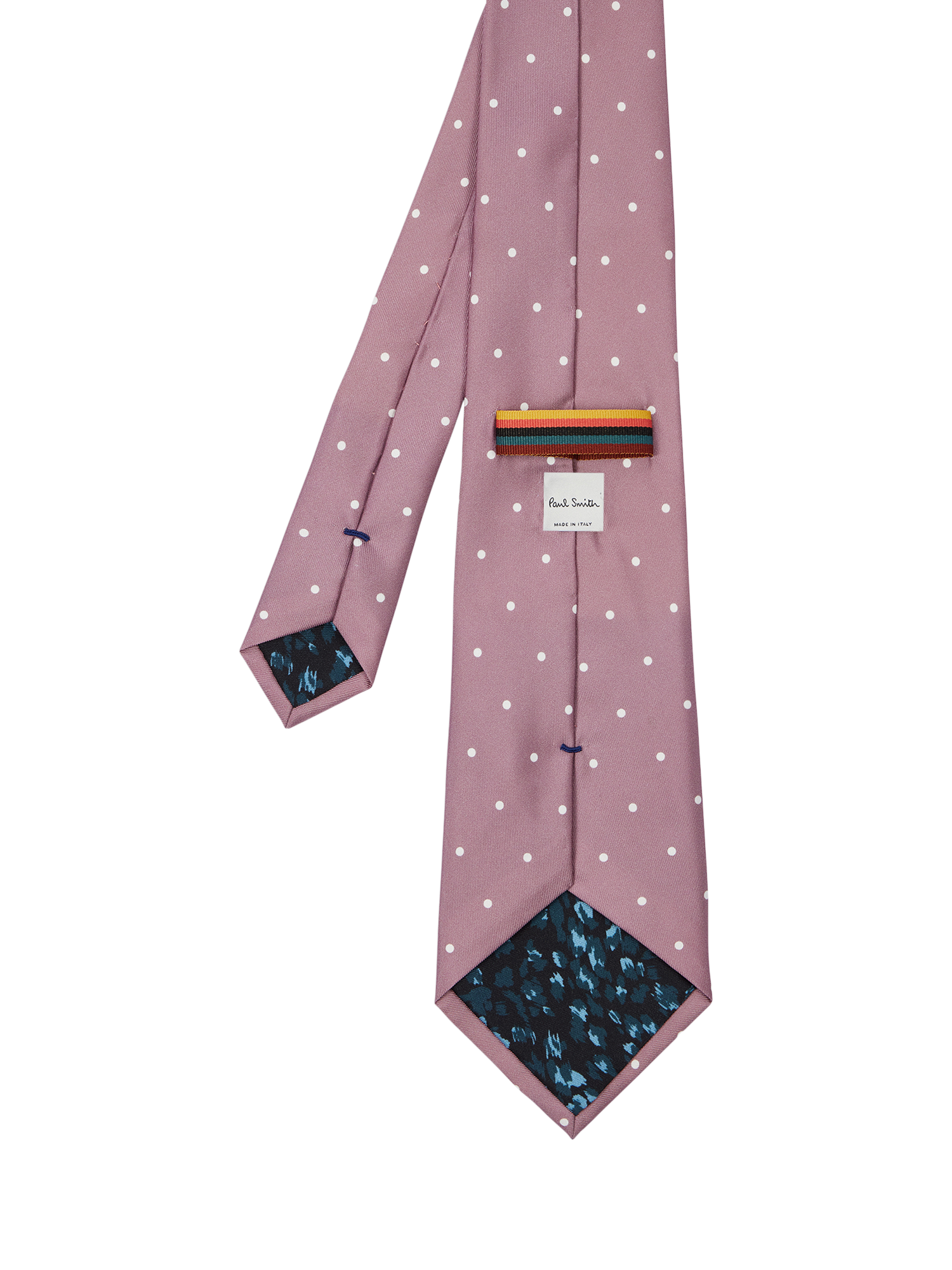 A pure silk tie from Paul Smith patterned with a charming polka dot print.