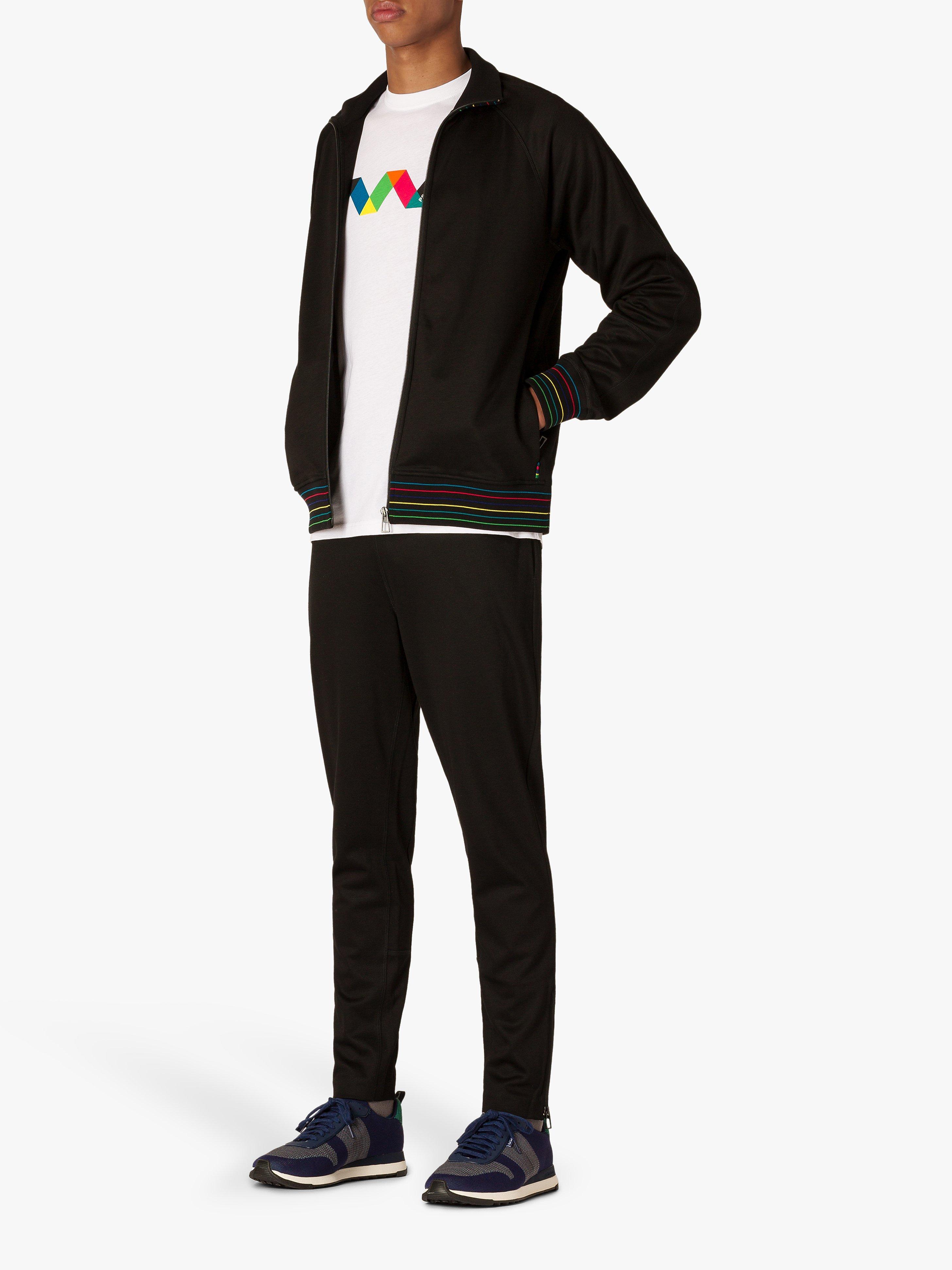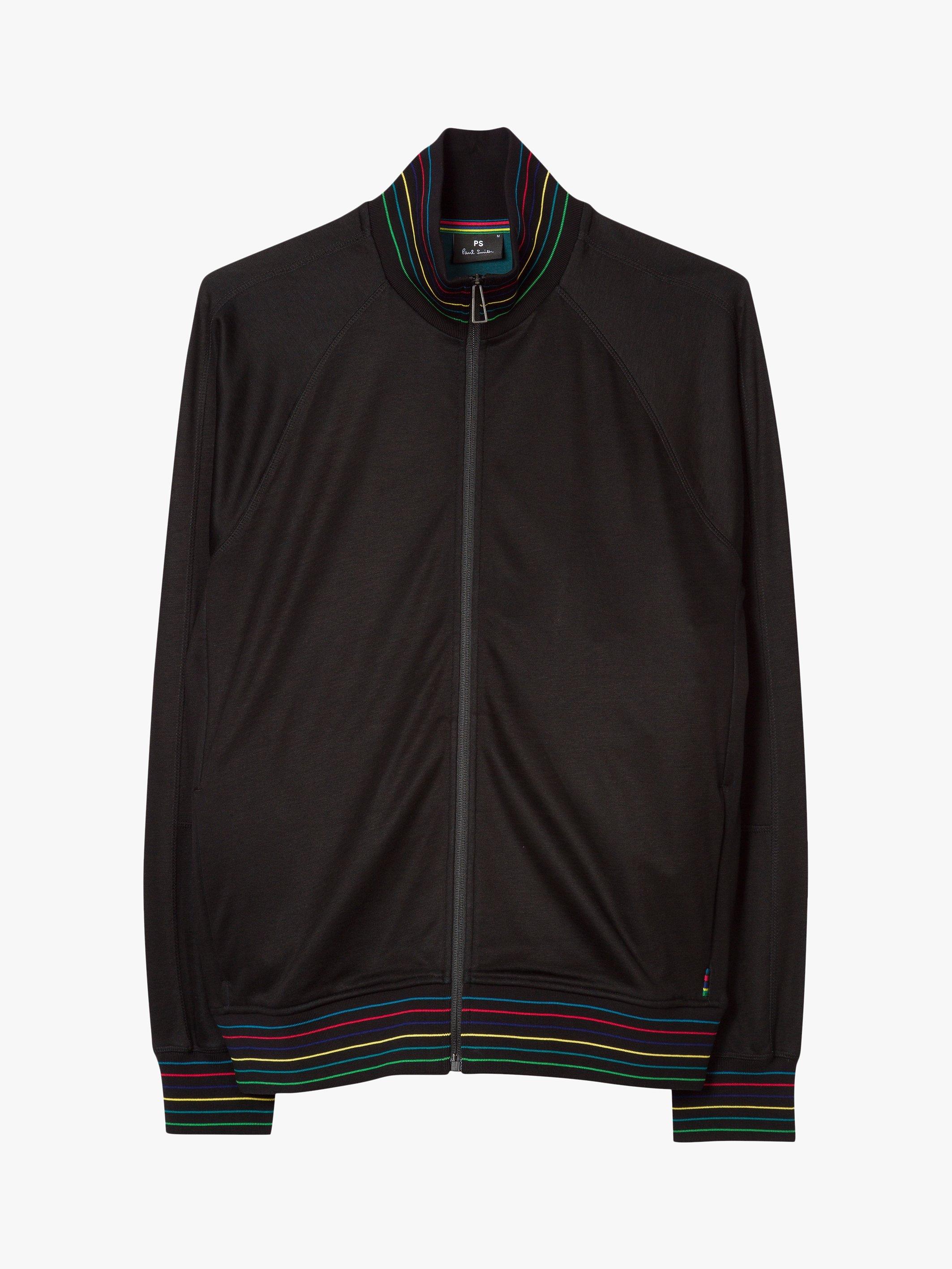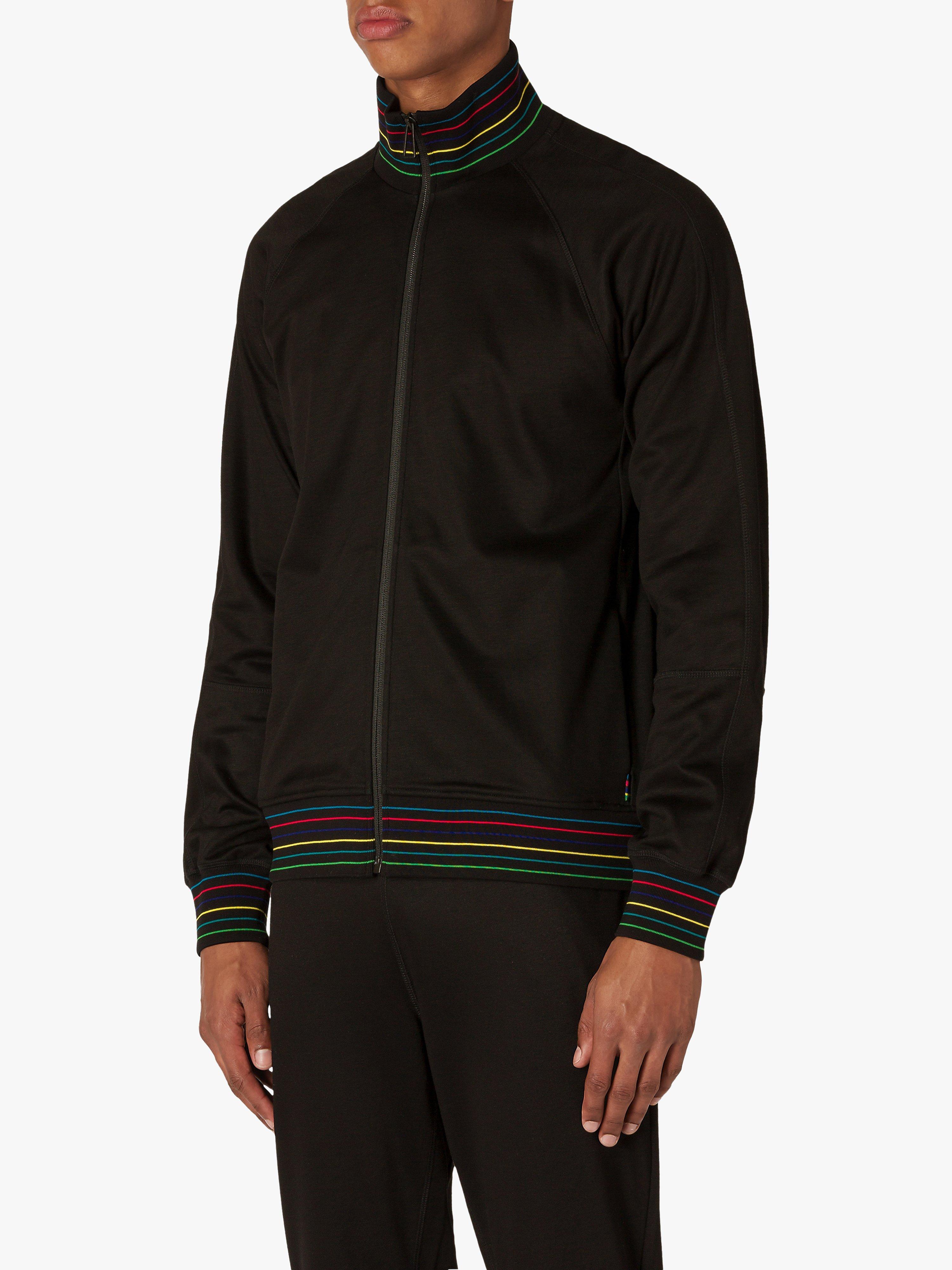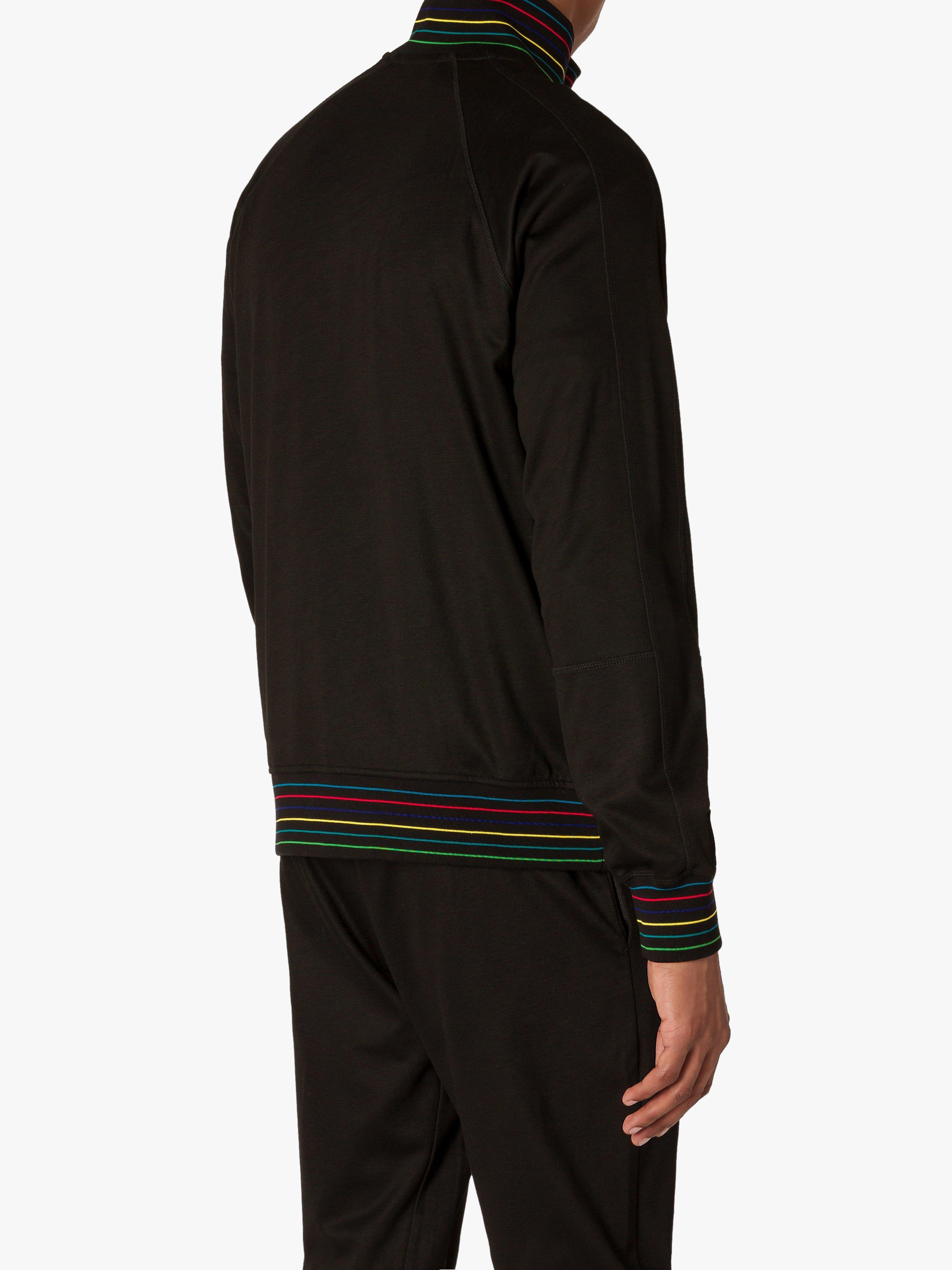 Add this sporty track top from PS Paul Smith to your casual wardrobe, it's made from a lightweight cotton blend and features stylish stripe detail to the collar, cuffs and hem in the brand's striking rainbow coloured livery.