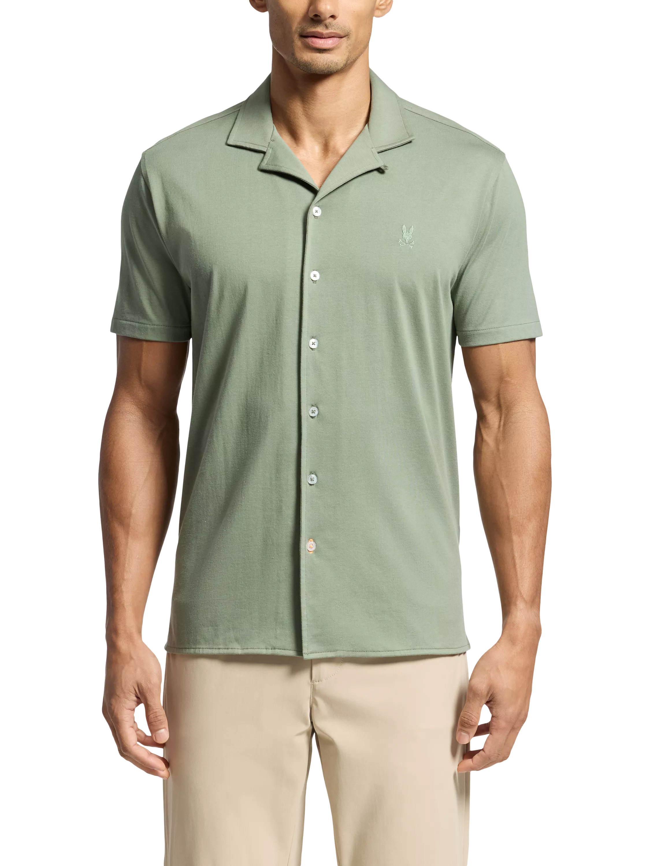 Psycho BunnyBryan Cotton Blend Regular Fit Camp Collar Shirt