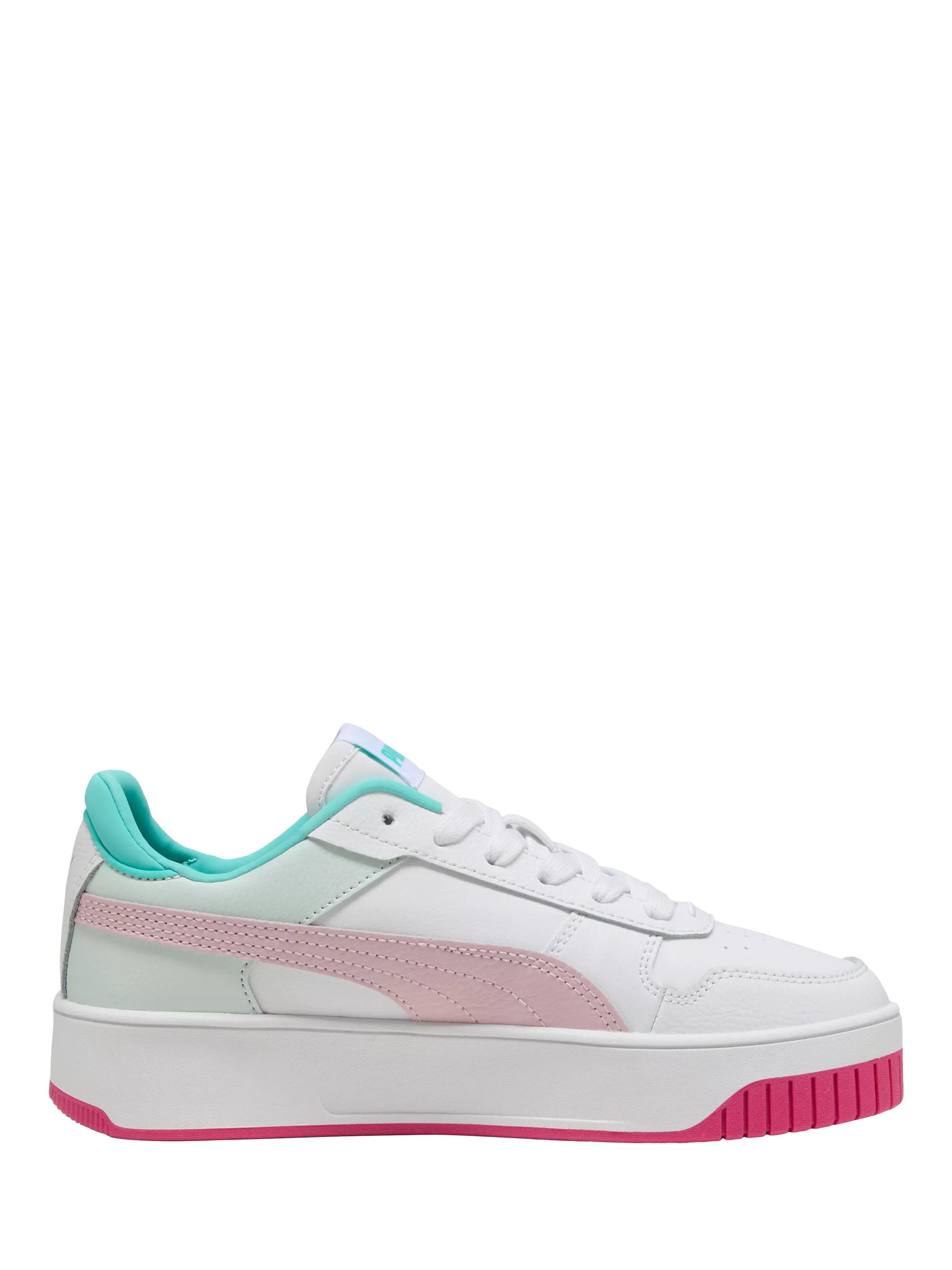 The upper is streetwear-inspired with toe overlay and basketball touch. It's accented by a perforated vamp and a synthetic leather PUMA Formstrip. The highlight of the shoe is the new cupsole tooling though with a slightly elevated platform sole with texture interest in toe and heel area. The SoftFoam+ sockliner provides superior cushioning and optimal comfort for every step of your day.