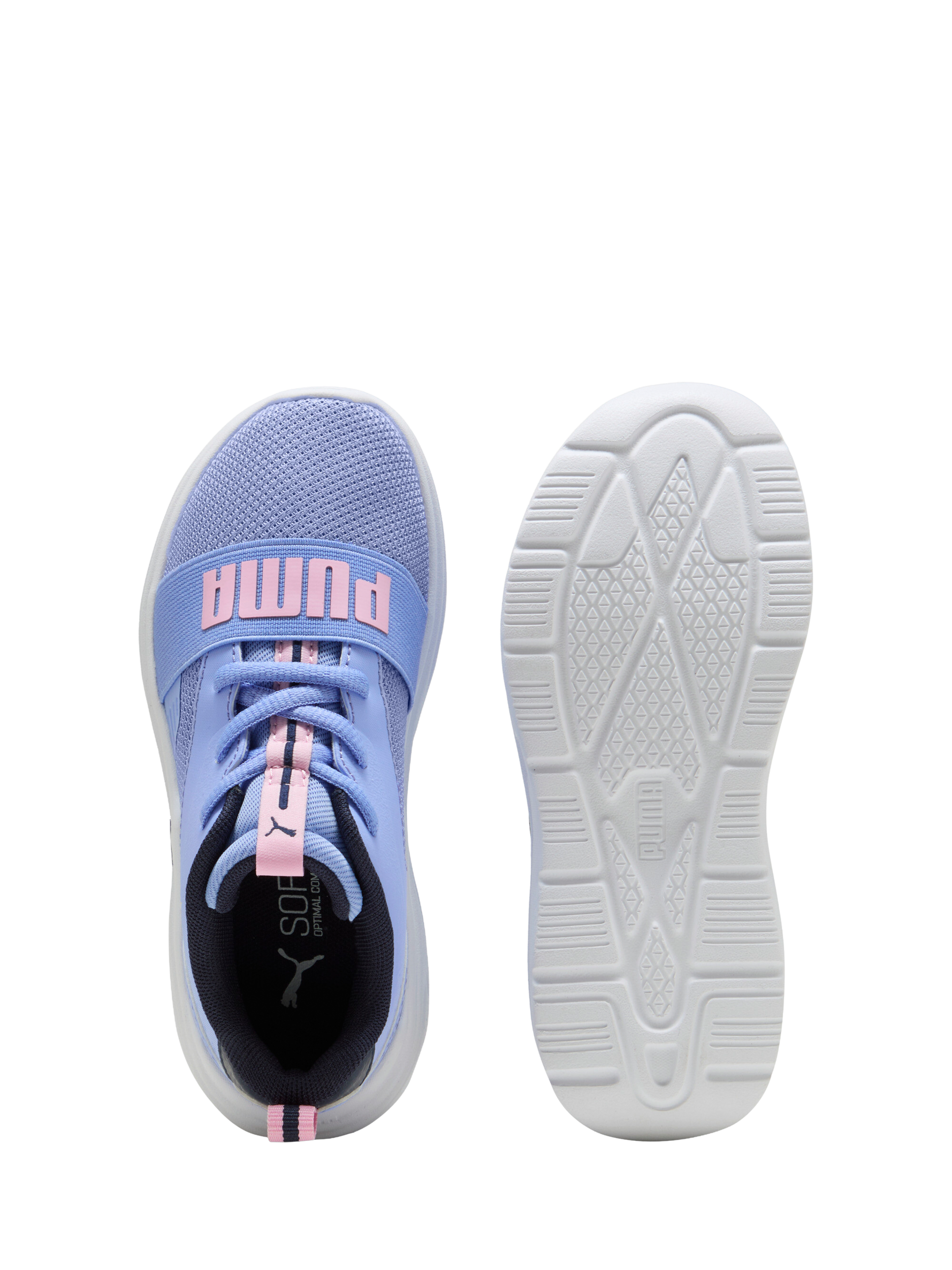 Get ready for action with the latest Soft Wired 2 trainers. Featuring a lightweight air mesh upper, elasticated band across the top and 3D printed PUMA logo, these trainers are perfect for kids on the go. The SOFTRIDE sole and SOFTFOAM+ sock-liner ensure every step is cushioned and comfy.