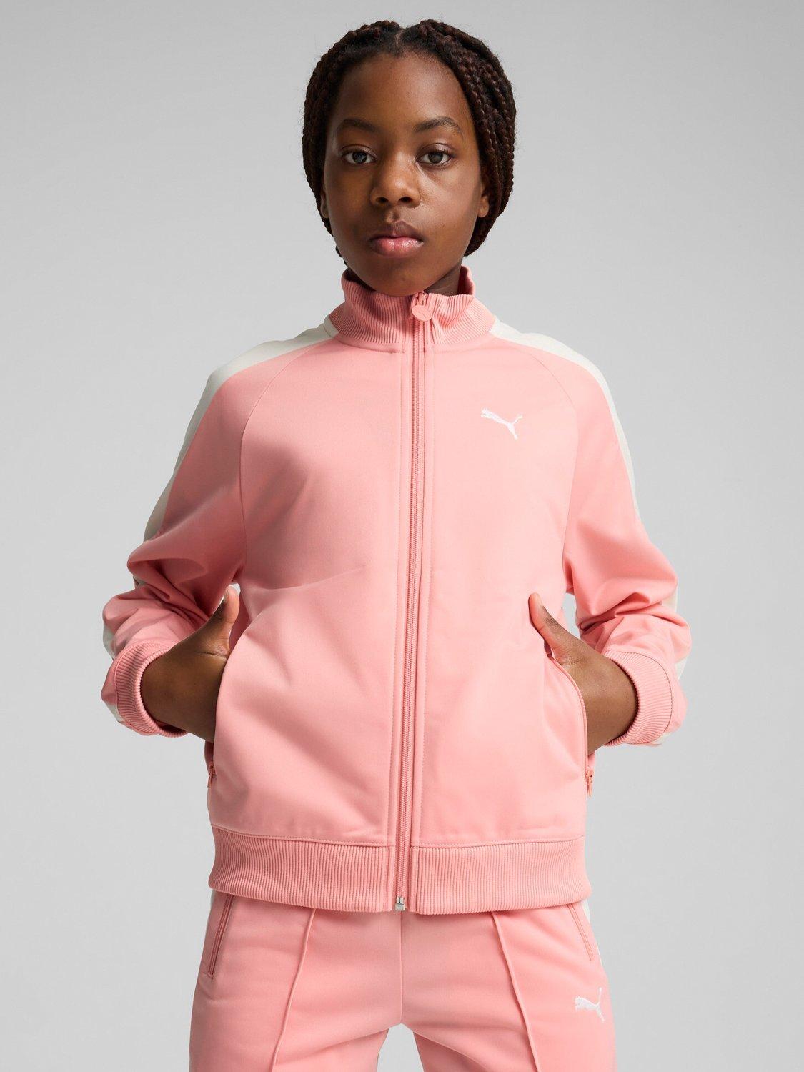PUMAKids' T7 Track Jacket, Pink/White, 9-10 years