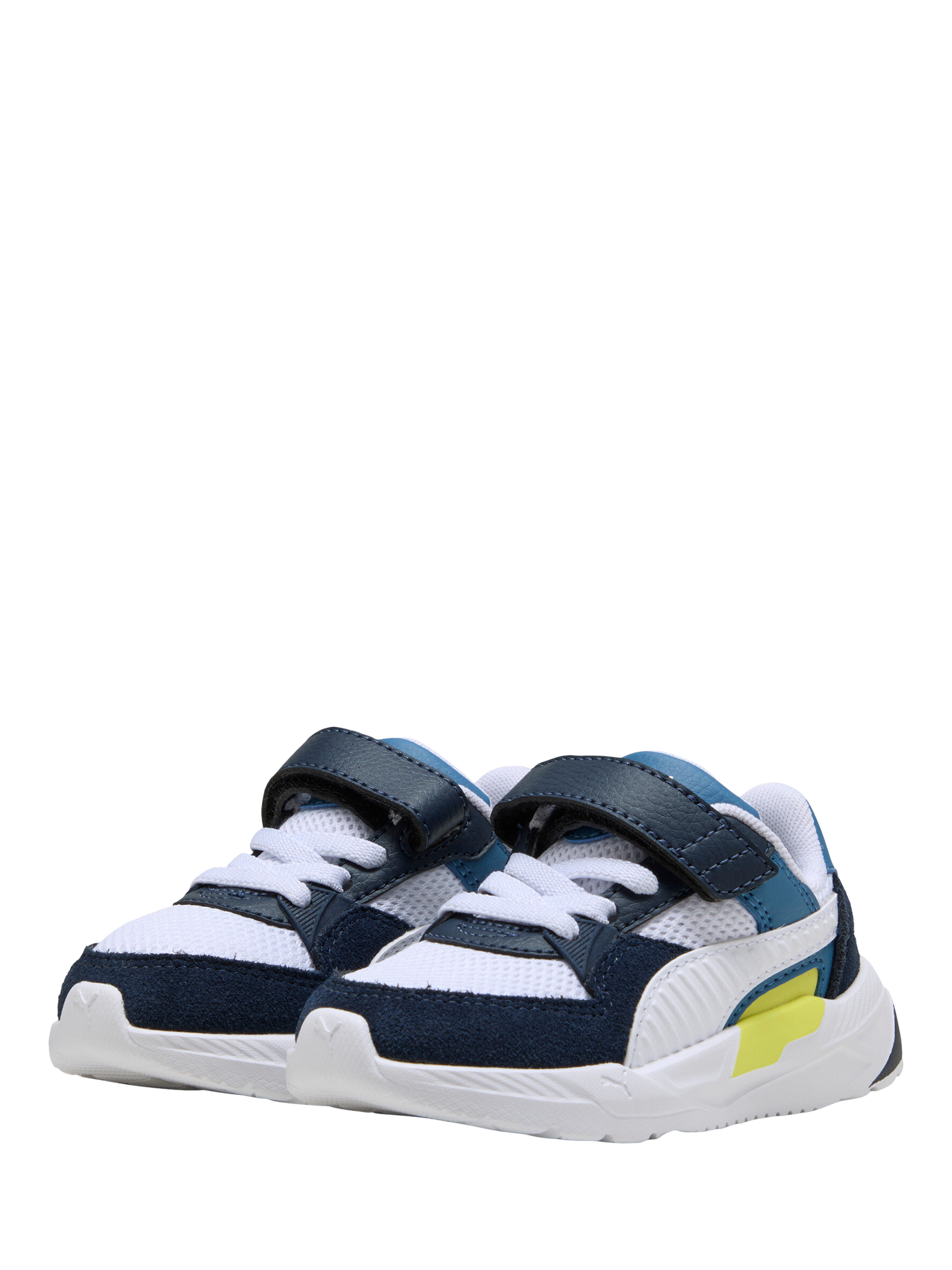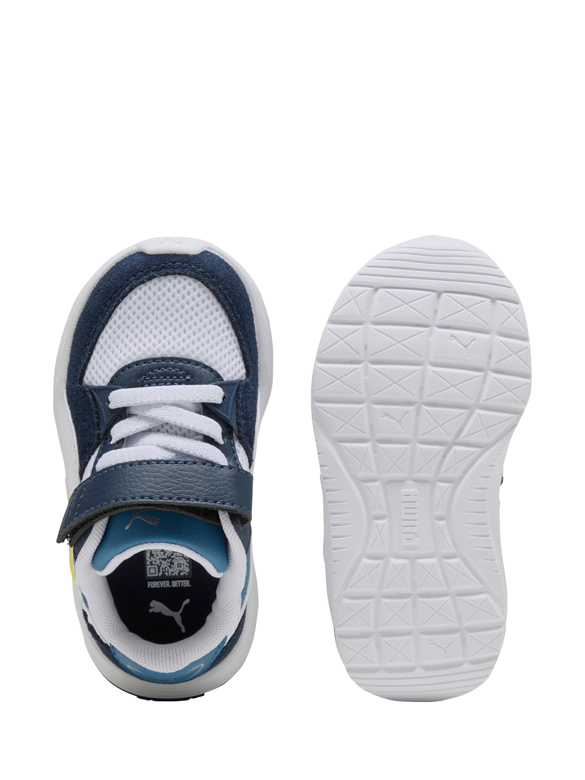Featuring a mesh upper with synthetic overlays and suede accents, these PUMA kicks bring a futro aesthetic to their every move. The CMEVA midsole and rubber outsole ensure grip, while the KinderFit sockliner guarantees the perfect fit. Elastic laces and hook-and-loop closure make them easy to wear.