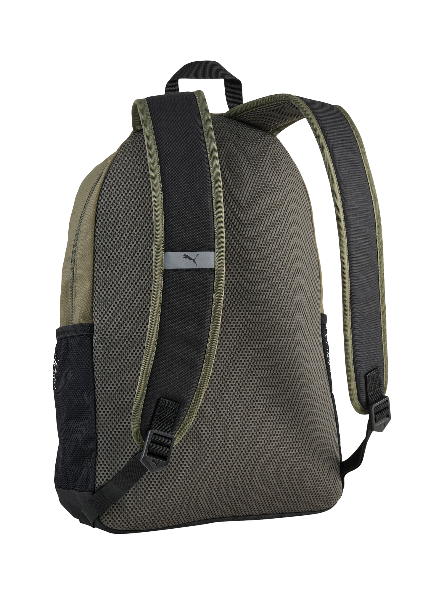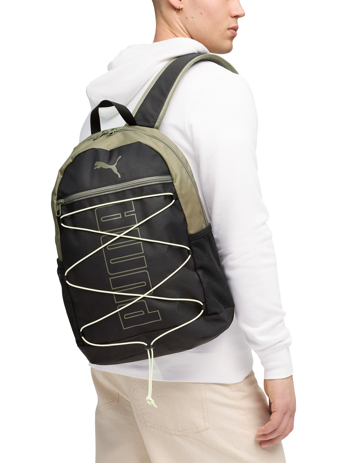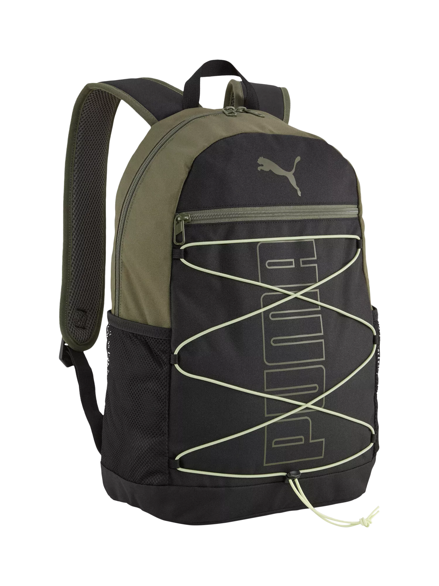 PUMA Plus Backpack blends sporty style with everyday function. Multiple compartments keep essentials organised, while two side pockets hold your water bottle and umbrella. Padded straps and back ensure comfort on the go. Details include a two-way zip opening into main compartment, zip front pocket, two side mesh pockets and lined sleeve.