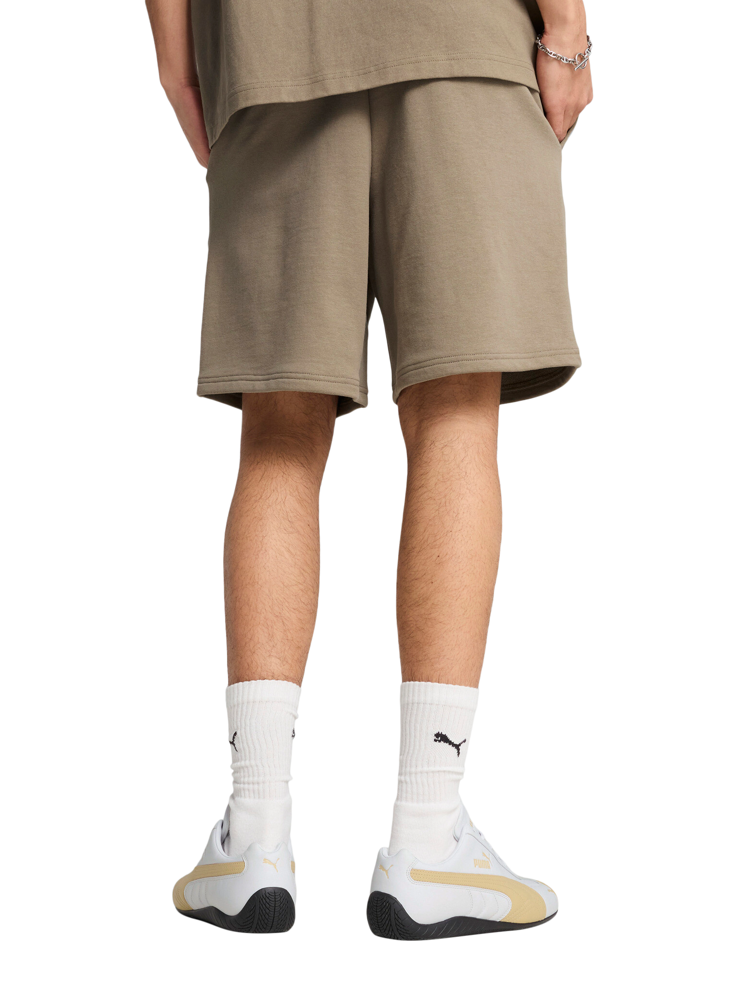 Designed for a relaxed fit, these shorts are crafted from soft French Terry fabric and cut to sit at a medium rise, hitting just above the knee. Complete with a practical side pocket and subtle branding, they offer a straightforward and functional silhouette.